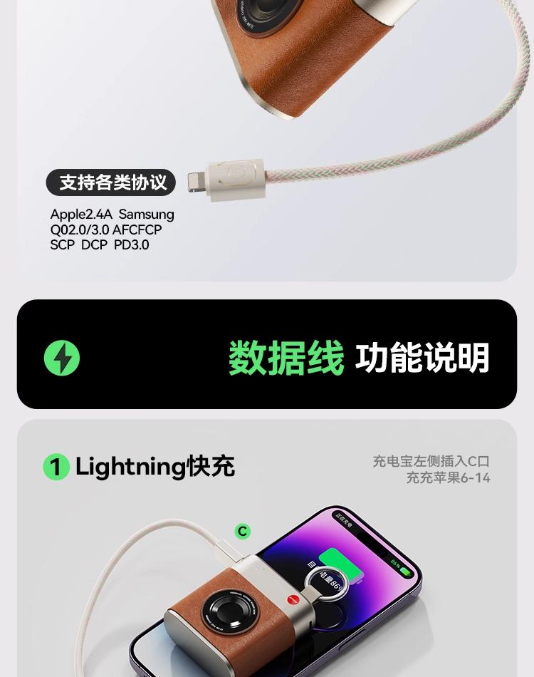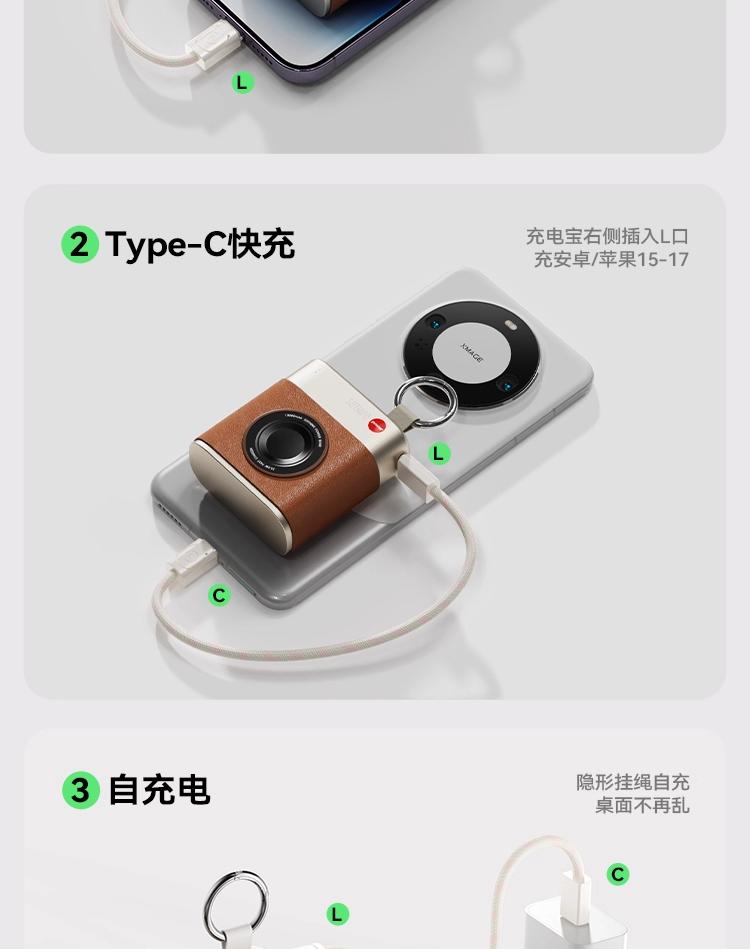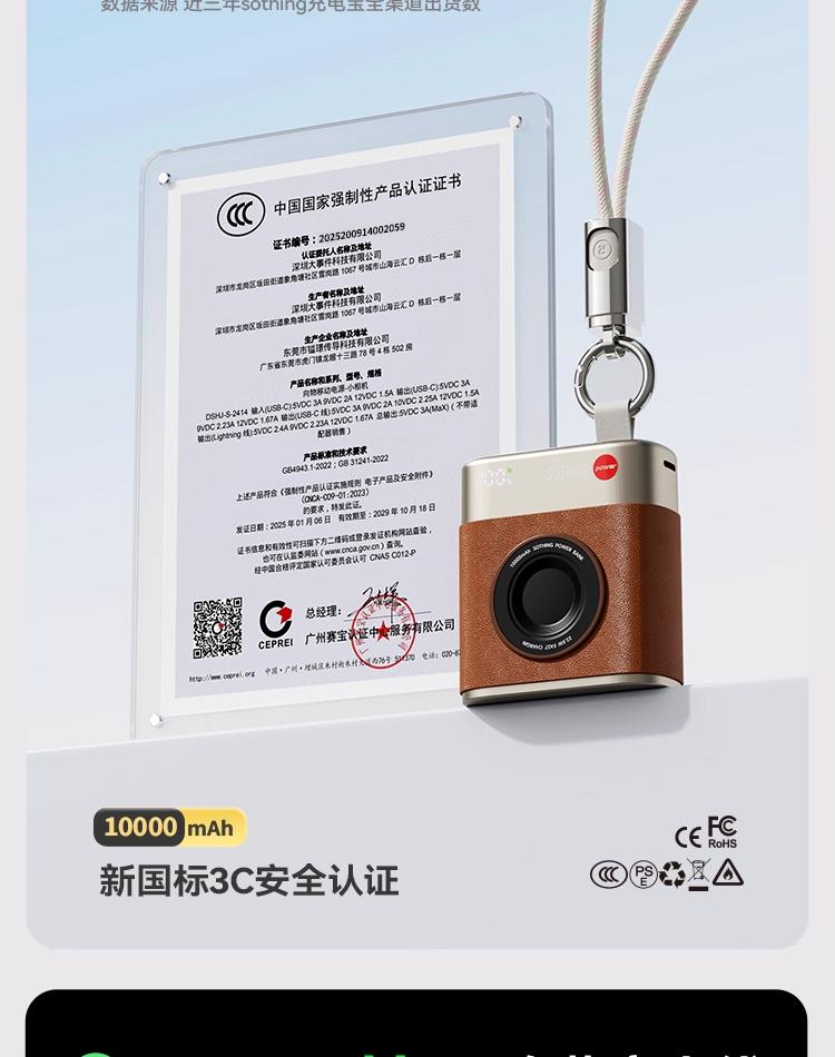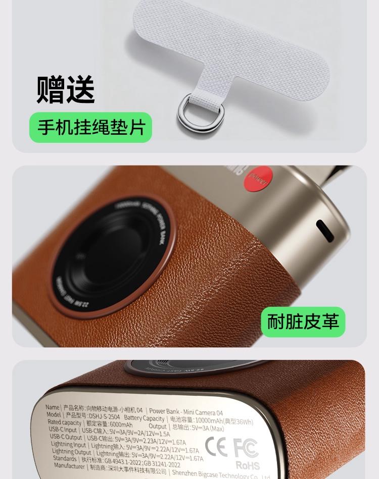 【3C认证】向物小相机DSHJ-S-2504小巧便携自带线充电宝手机专用超迷你10000mAh快充可爱移动电源适用于苹果17华为小米可上飞机