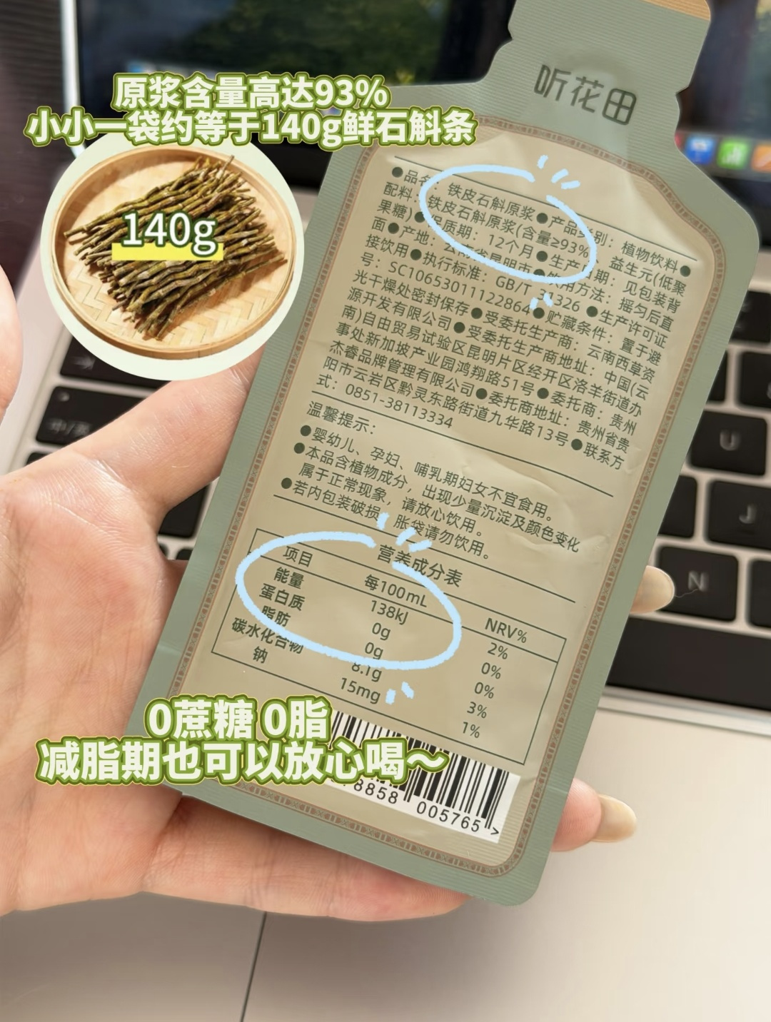 小小一袋约等于140g鲜石斛条.0添加0蔗糖0代糖