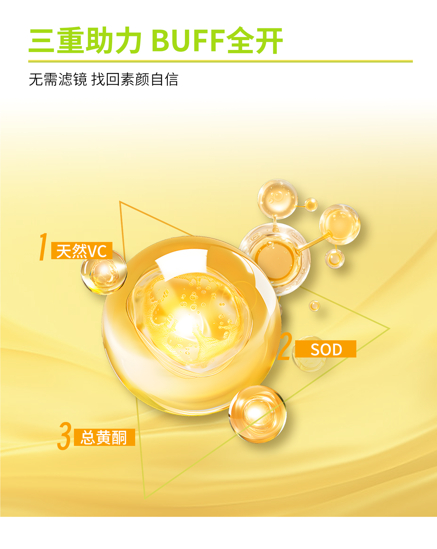 天然VC/总⻩酮/SOD,三重抗氧化成分协同运作!!提升抗氧化效率