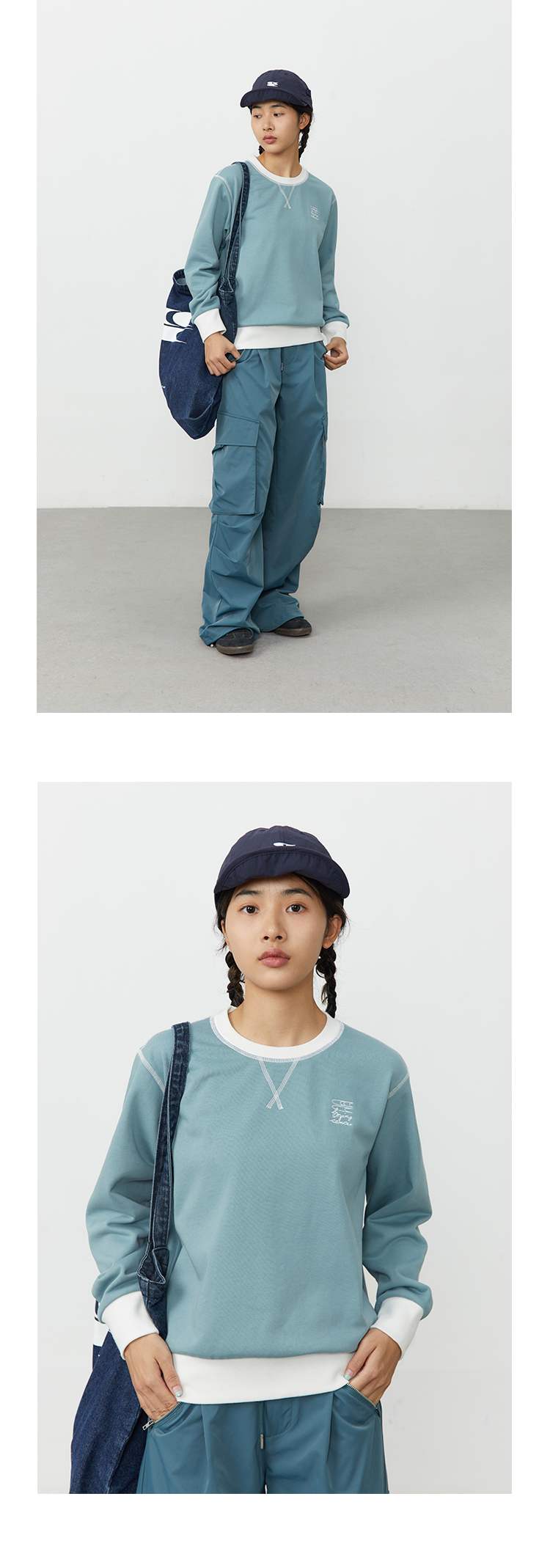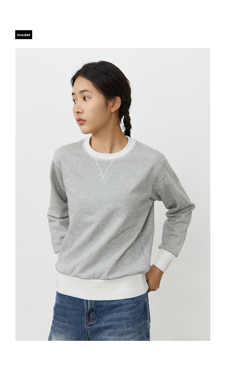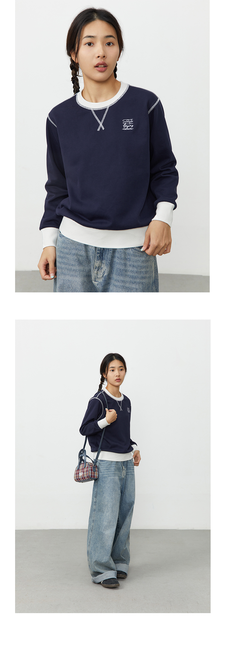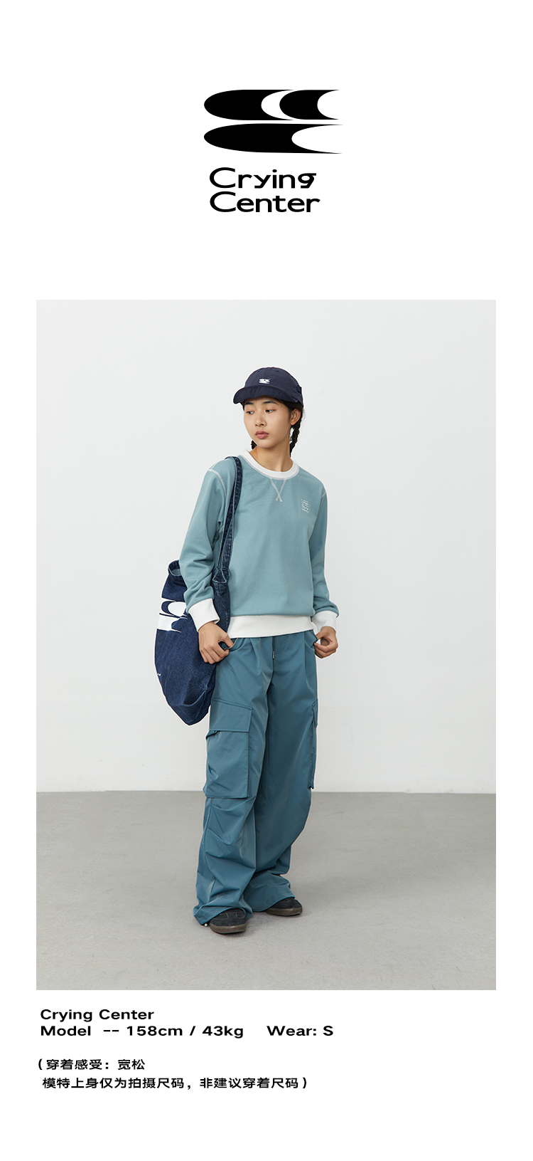 CryingCenter 乖乖女孩校园常青藤合身短版卫衣圆领内搭款藏青灰