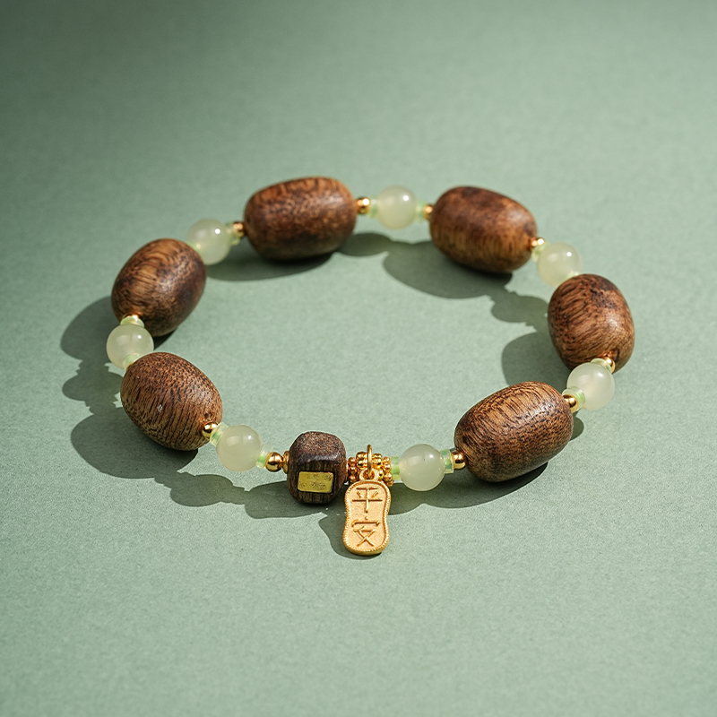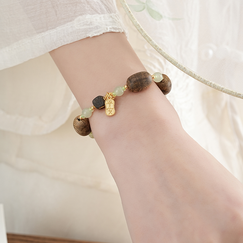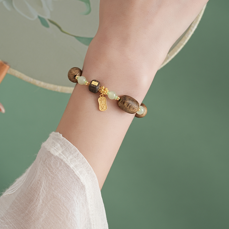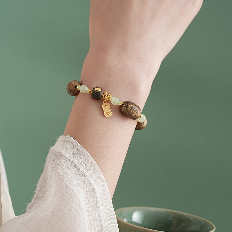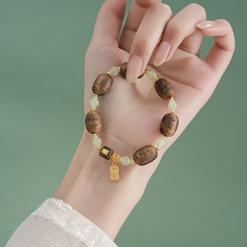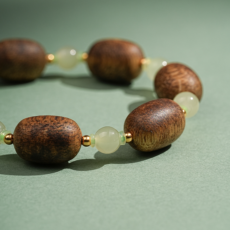 【产品尺寸】沉香约14*10mm,和田玉约8mm,适合手围14-16cm