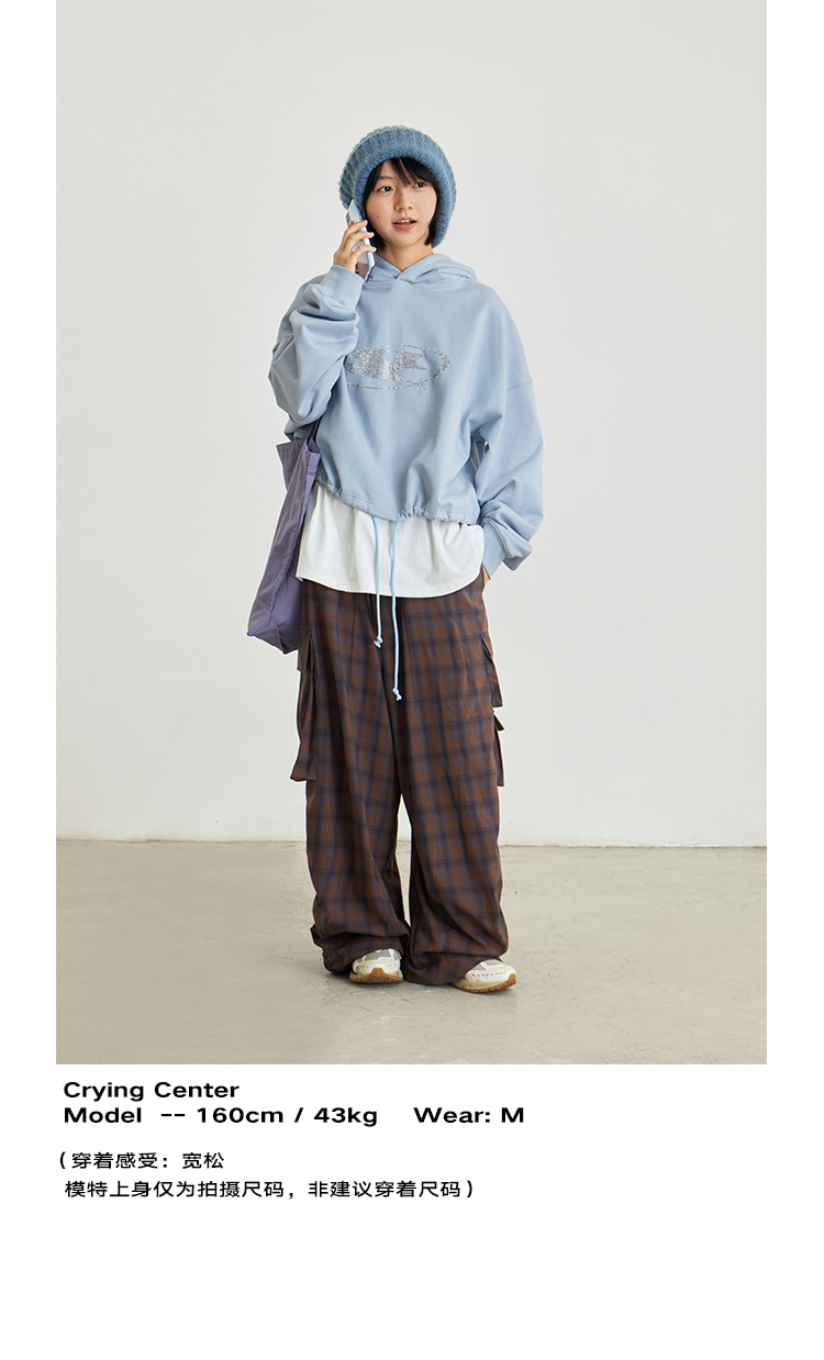 CryingCenter 彗星闪钻复古烫钻连帽经典宽松短款卫衣 哭喊中心