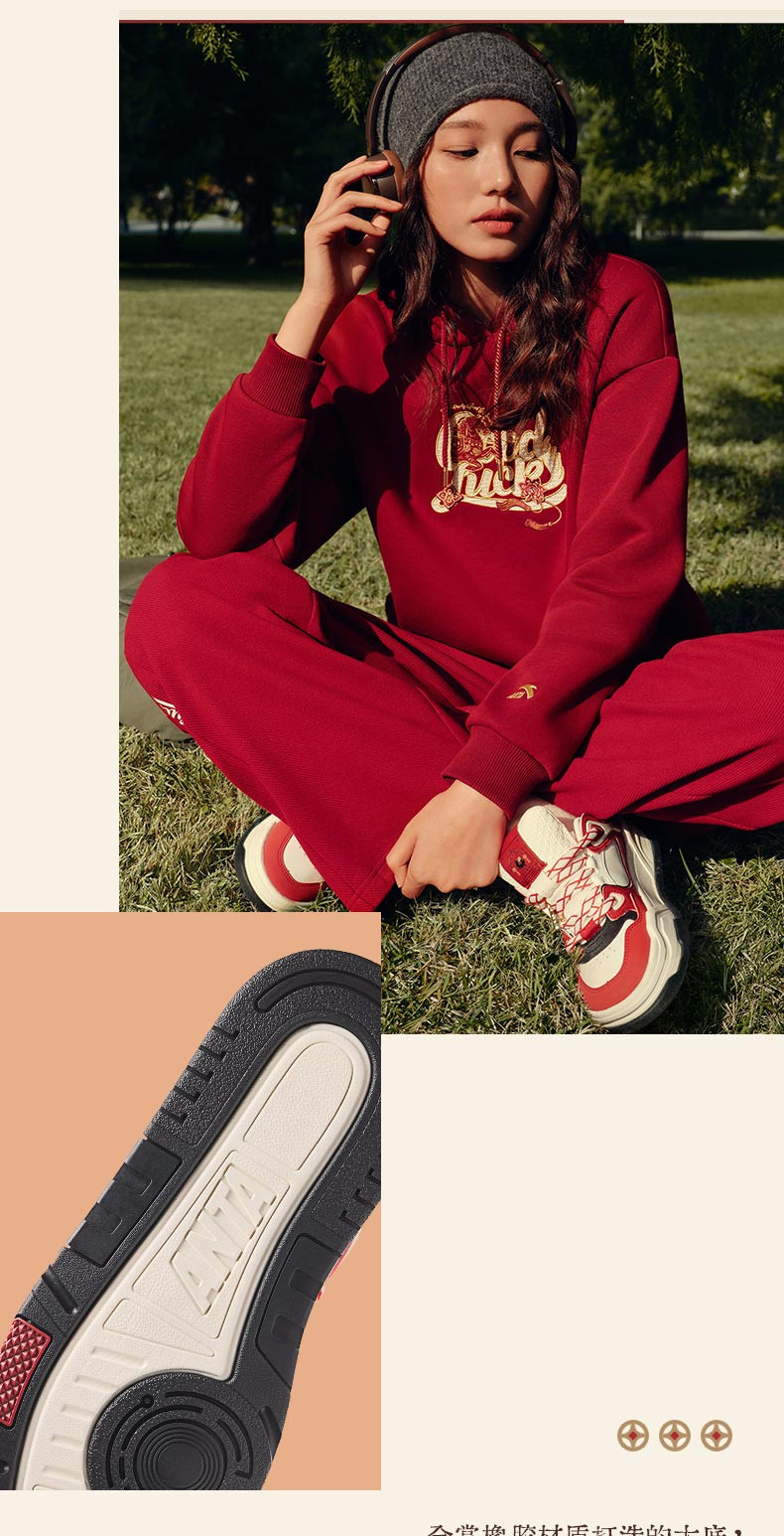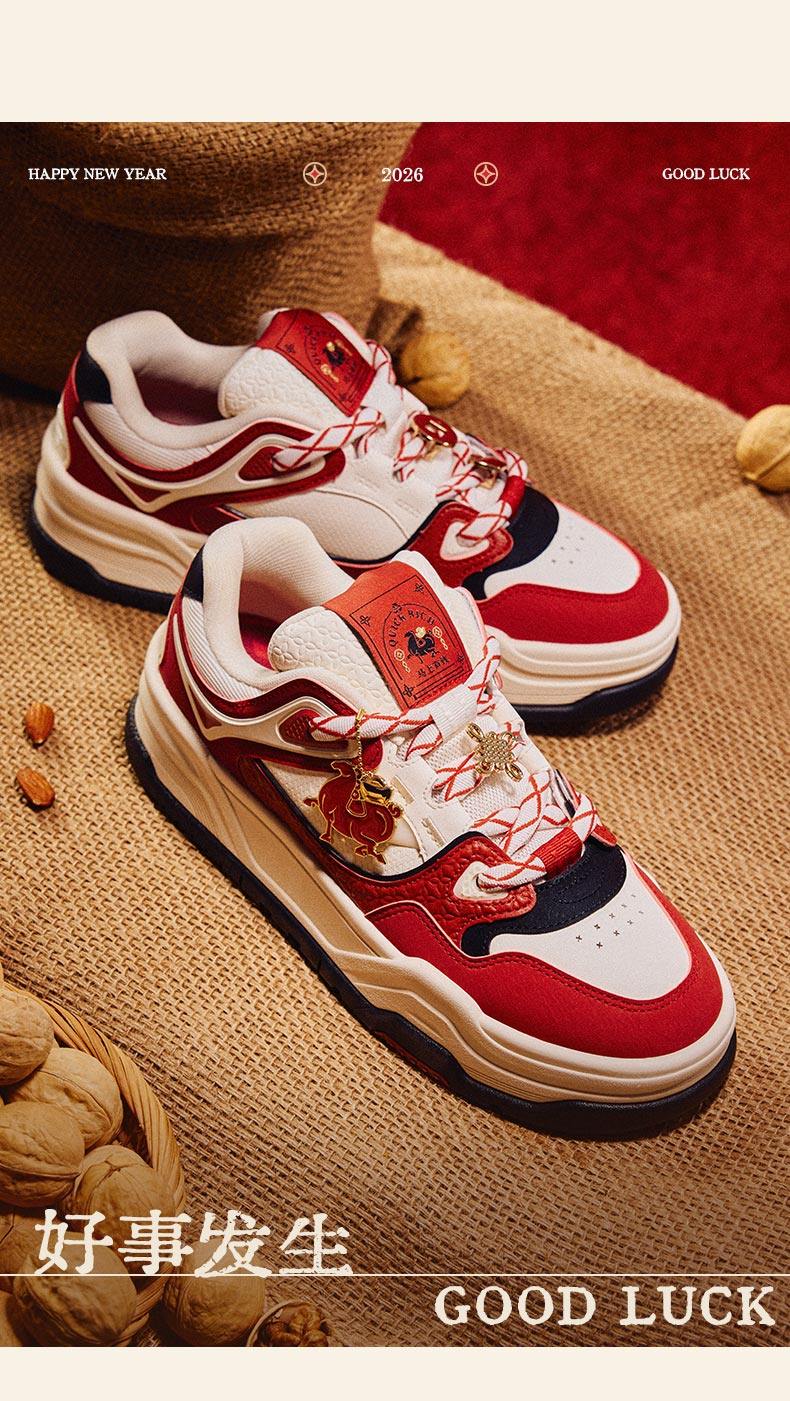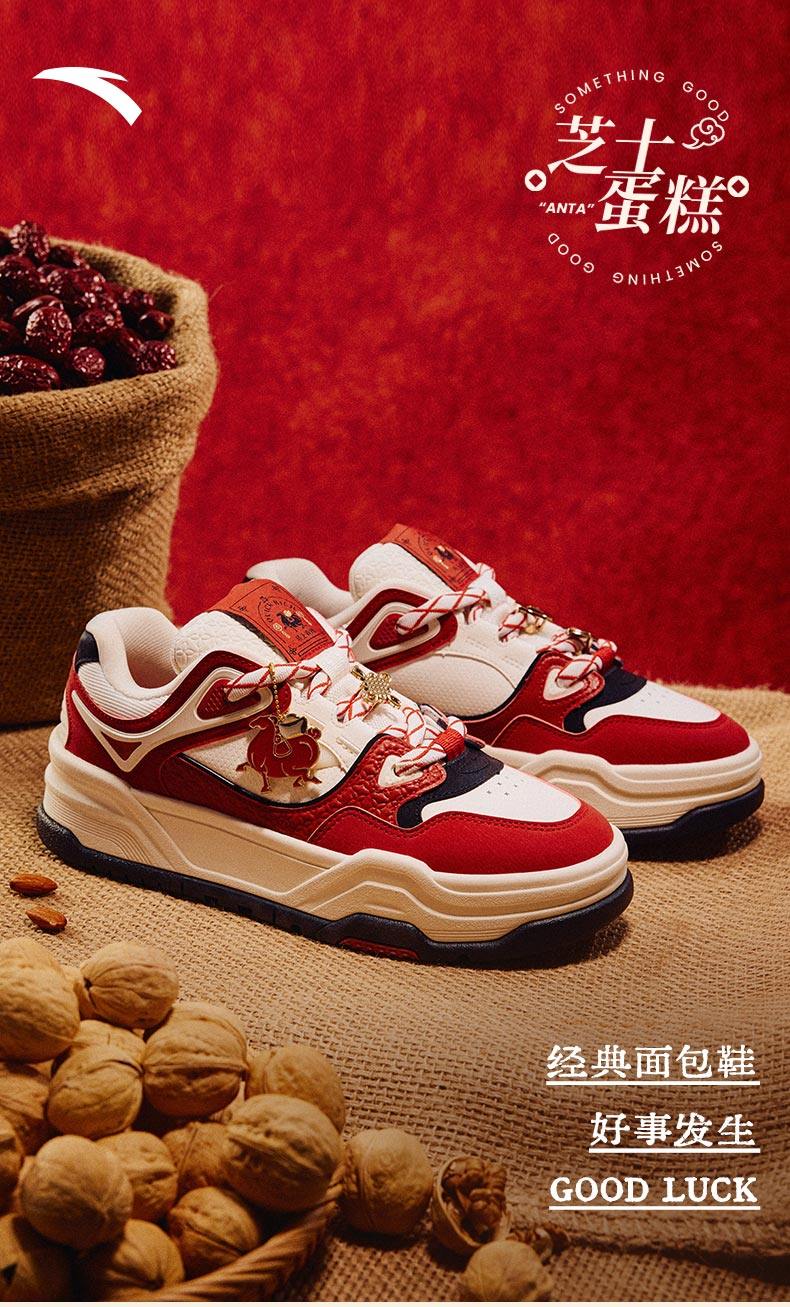 安踏芝士蛋糕板男好事发生新年休闲百搭潮流红色运动鞋112618071