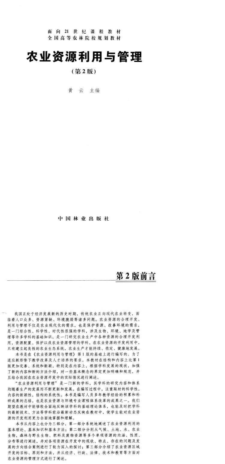 农业资源利用与管理 第2版 5826 面向21世纪课程教材 全国高等农林院校规划教材 中国林业出版社自营店