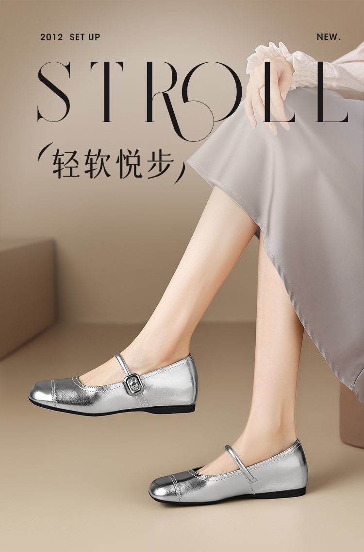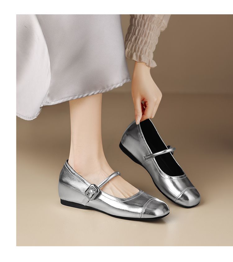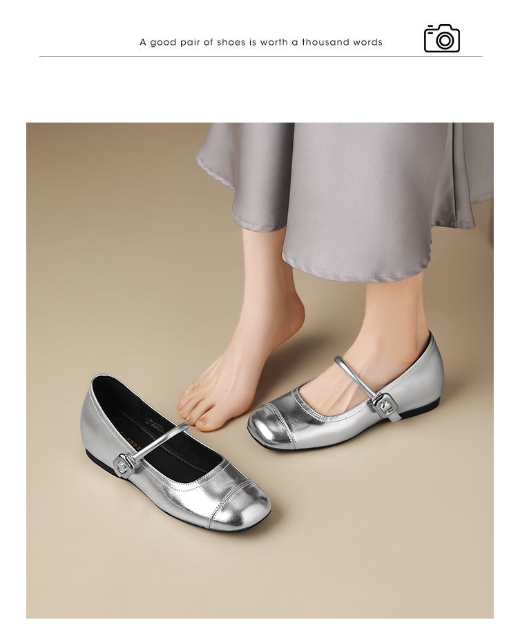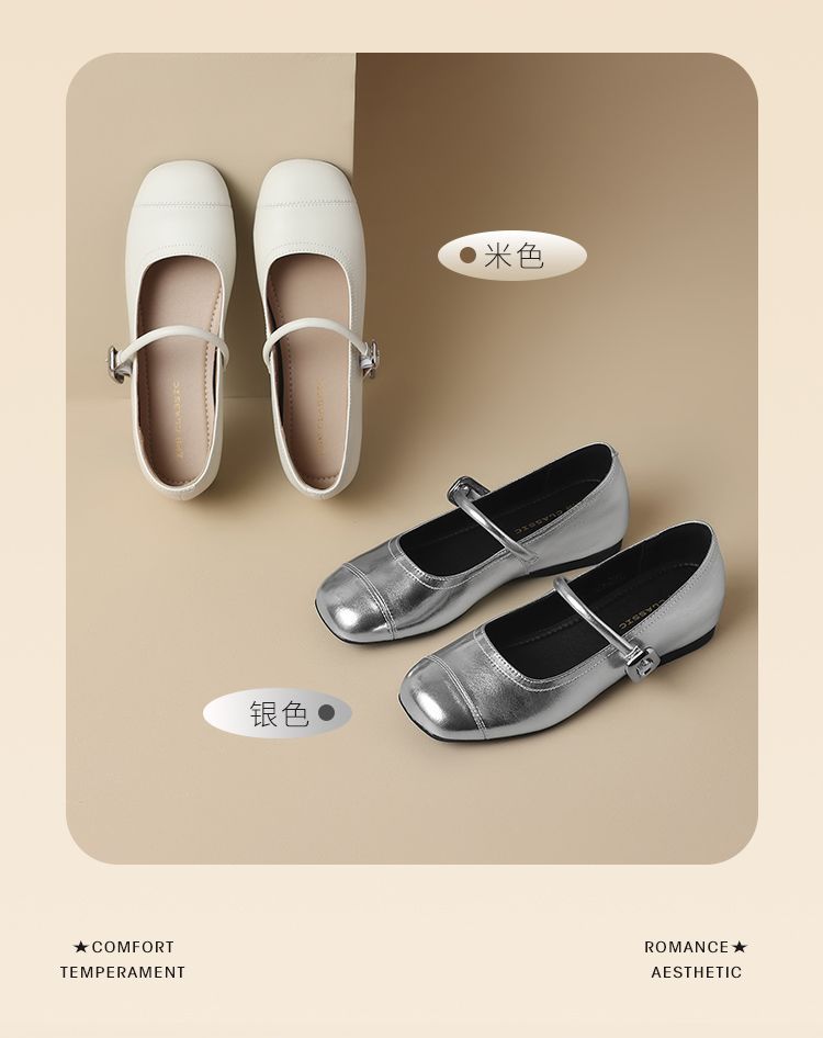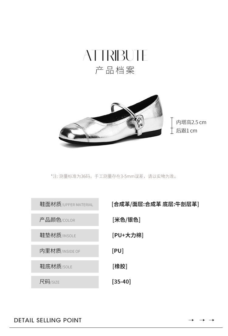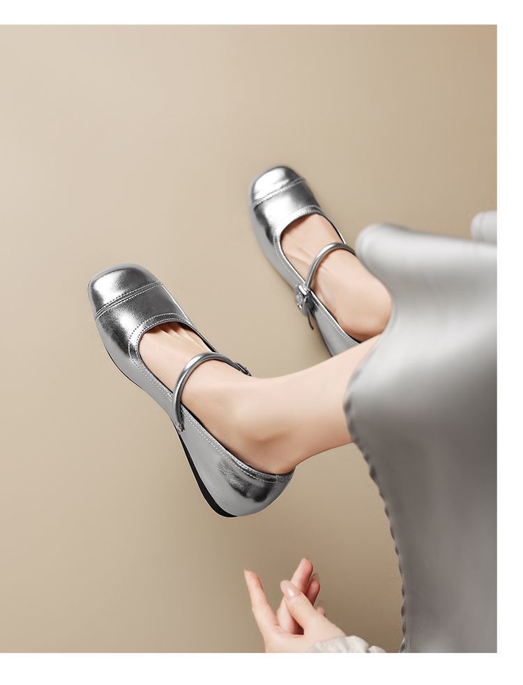 优选丨ZHR则则银色玛丽珍鞋女法式平底单鞋2025春季新款浅口软底豆豆鞋