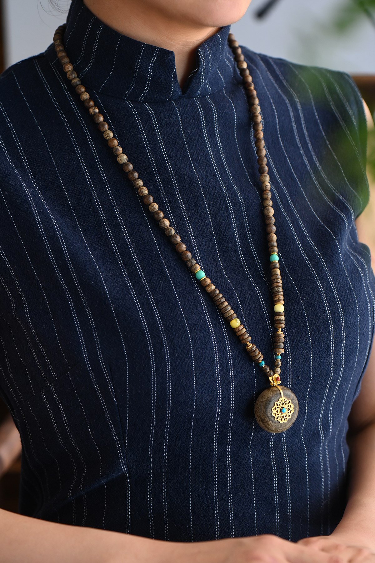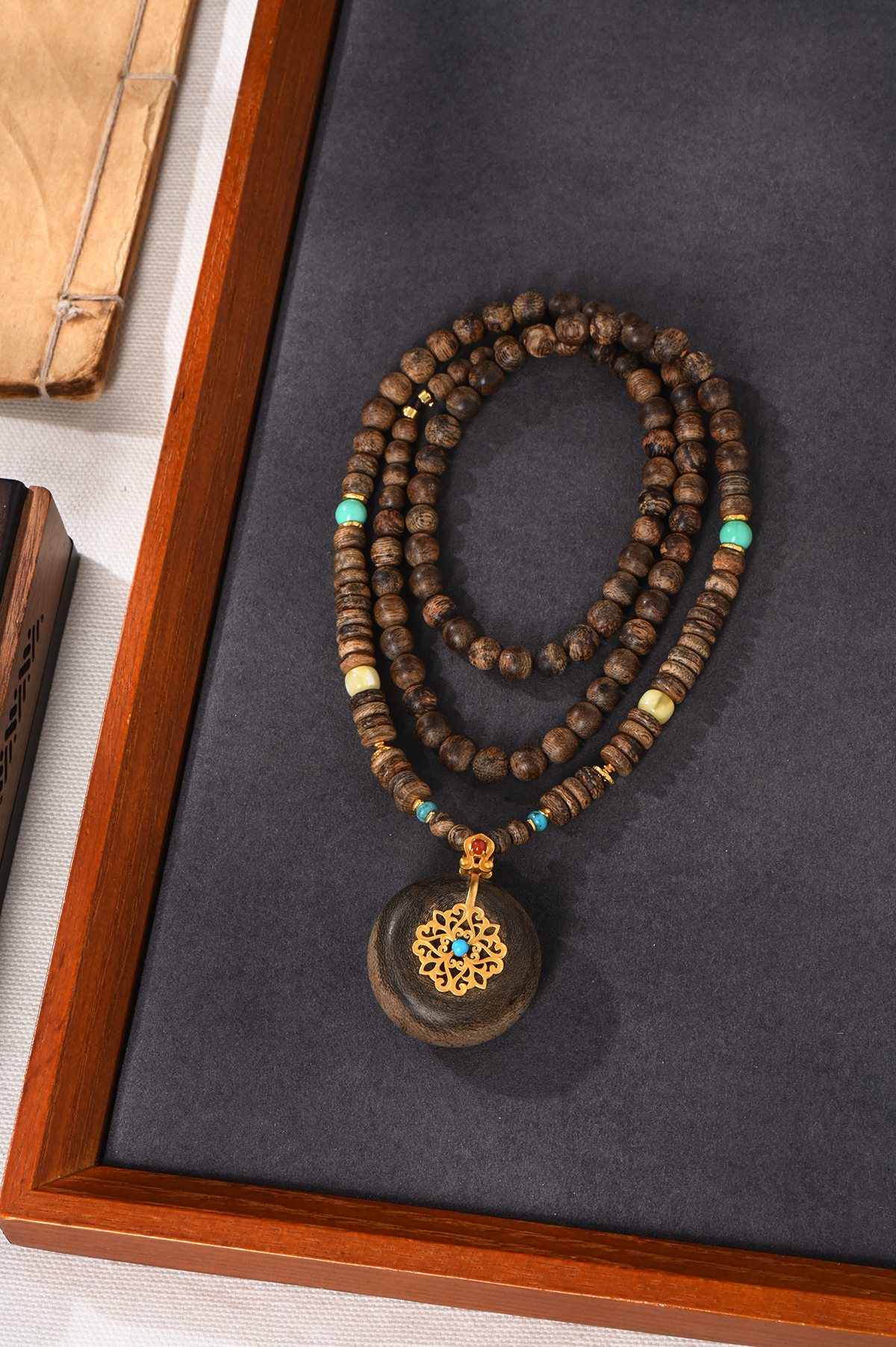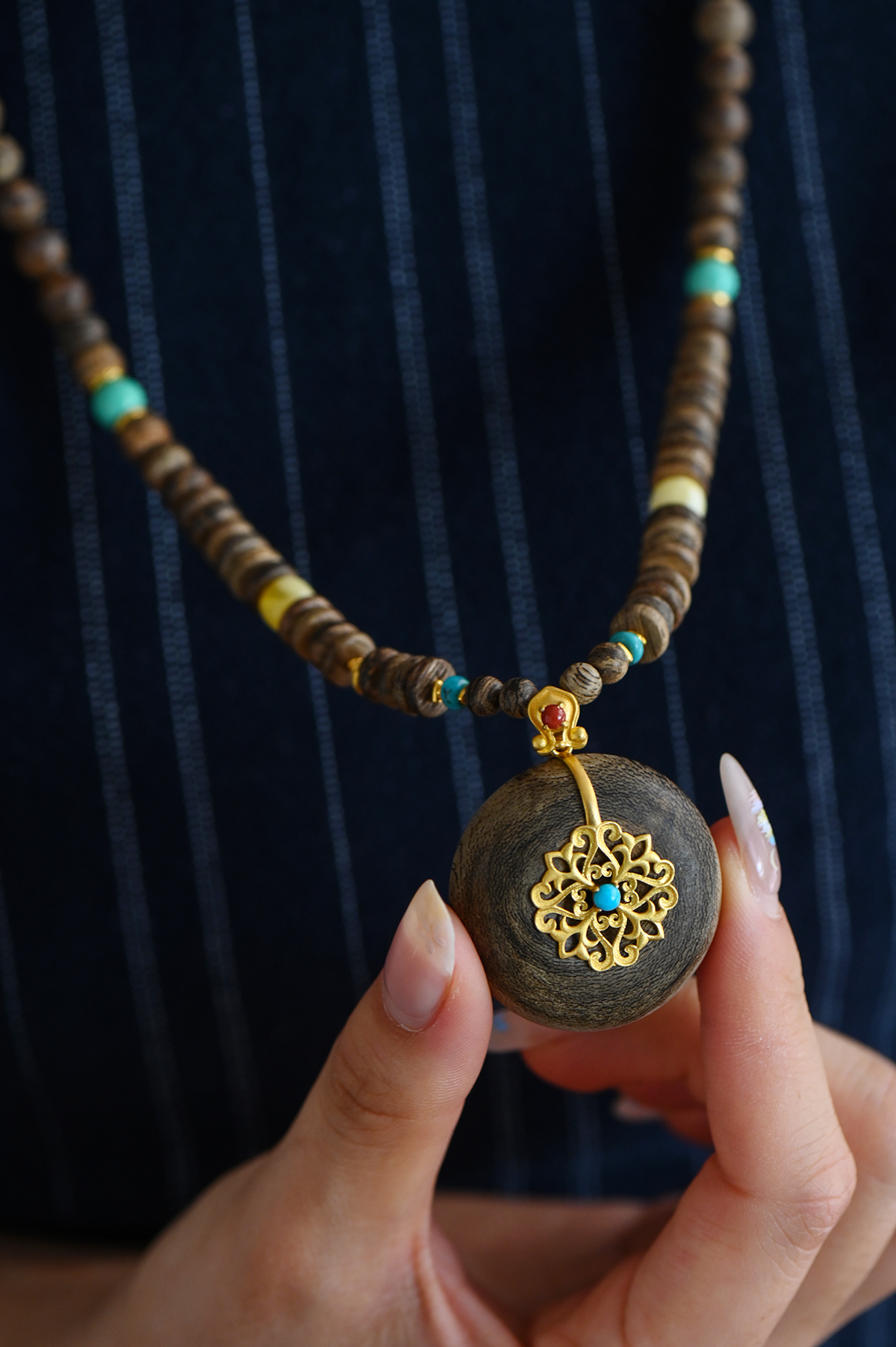 本款设计项链部分点缀了绿松石,让整个吊坠看起来更灵动,活泼。整体复古大气。
