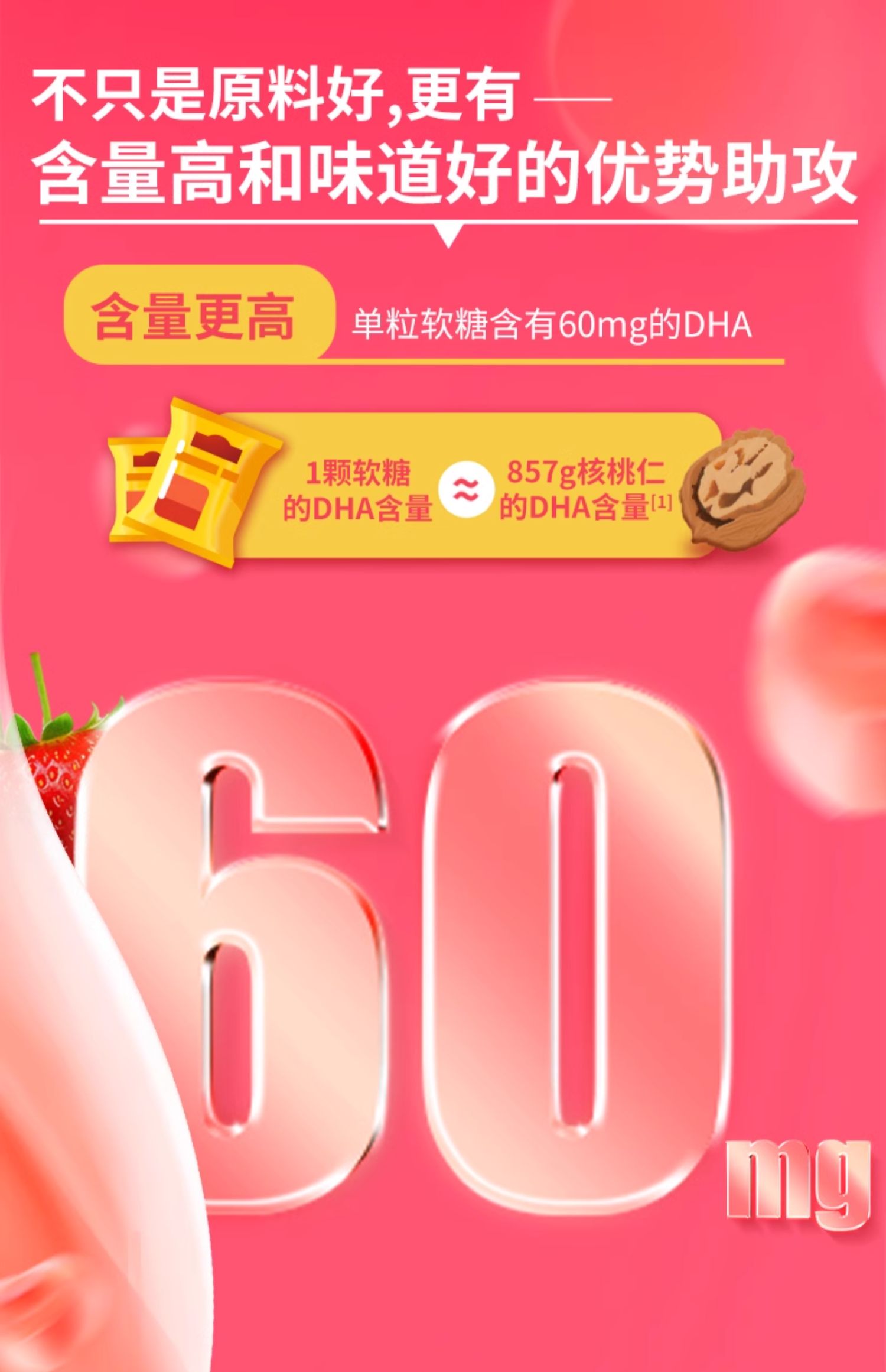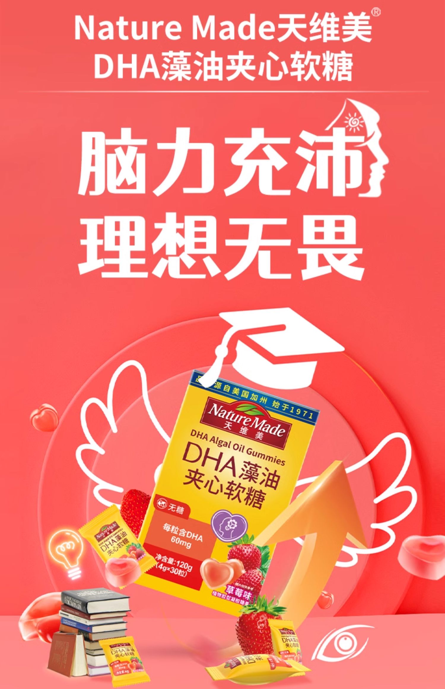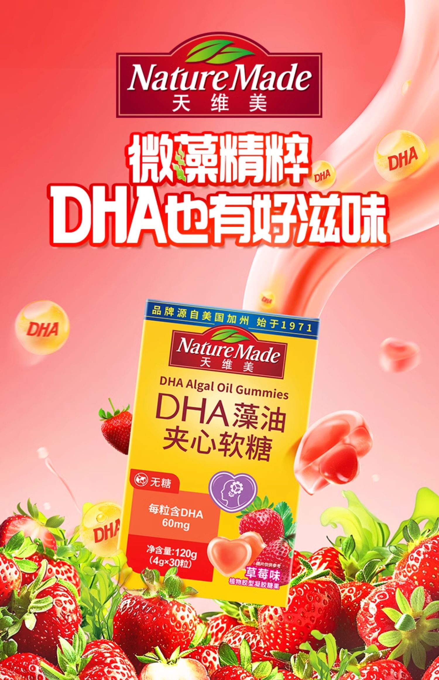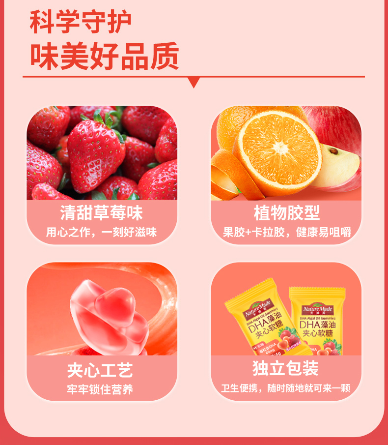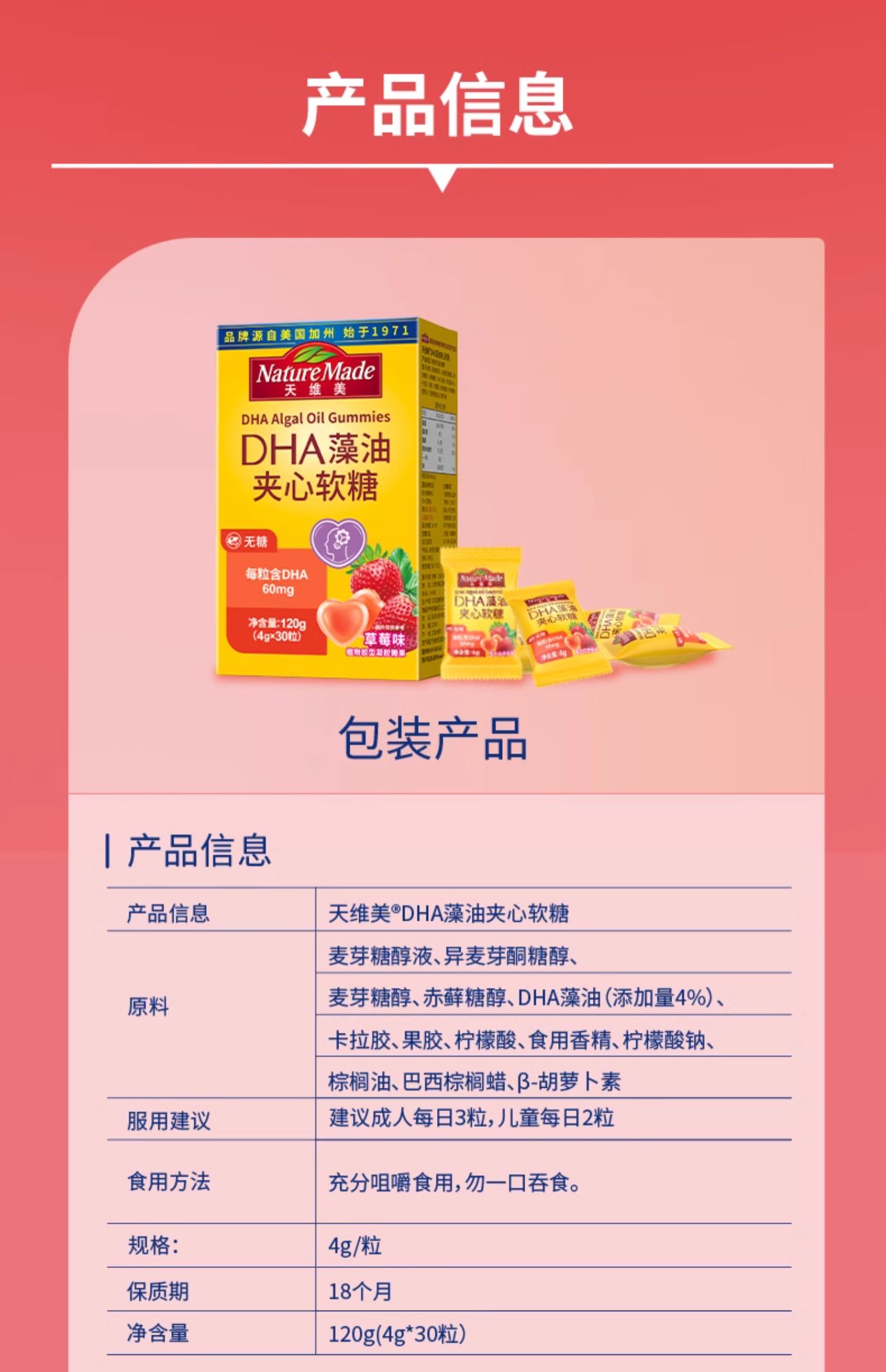 天维美® DHA藻油夹心软糖 草莓味 30粒/盒