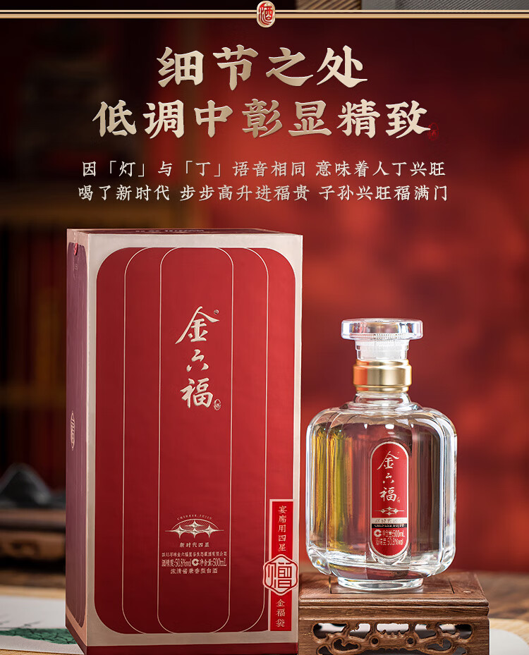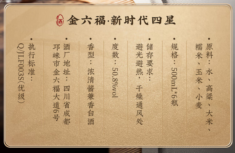 【仅供集采】金六福新时代四星 浓清酱兼香白酒纯粮酒五粮酿造 50.8度 500mL *6瓶装