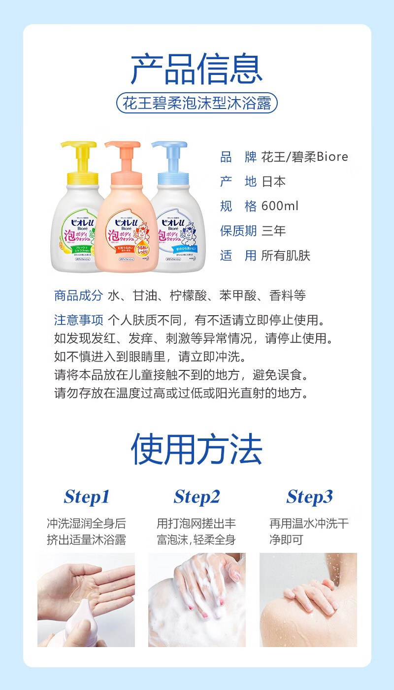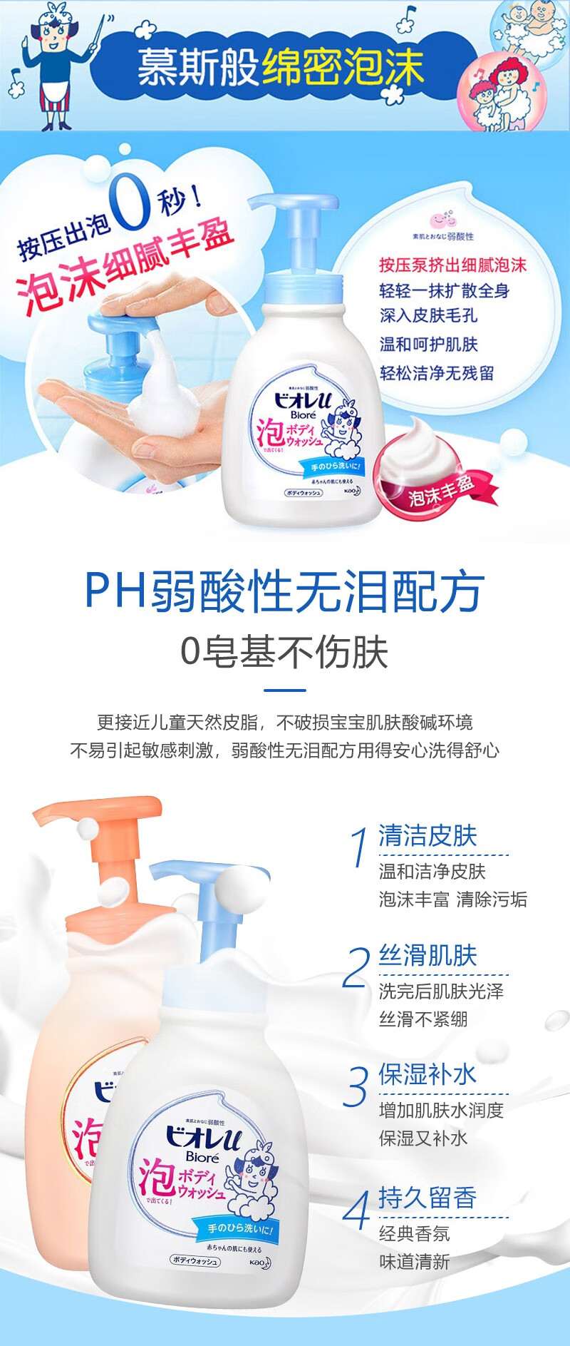 【保税仓】花王碧柔泡沫儿童无味沐浴露600ml 蓝