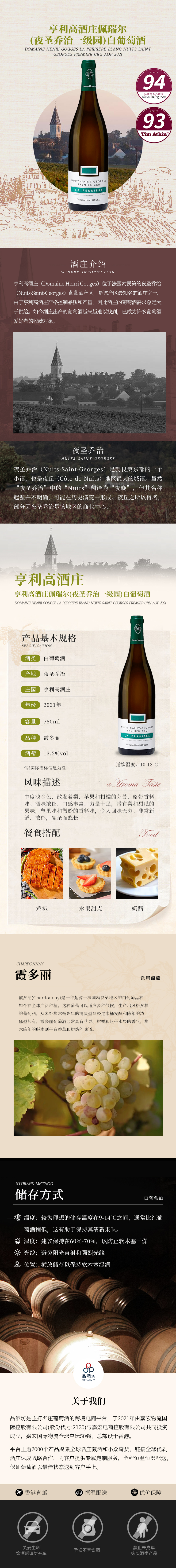 2021 Domaine Henri Gouges La Perriere Blanc Nuits Saint Georges Premier Cru AOP亨利高酒庄佩瑞尔(夜圣乔治一级园)白葡萄酒