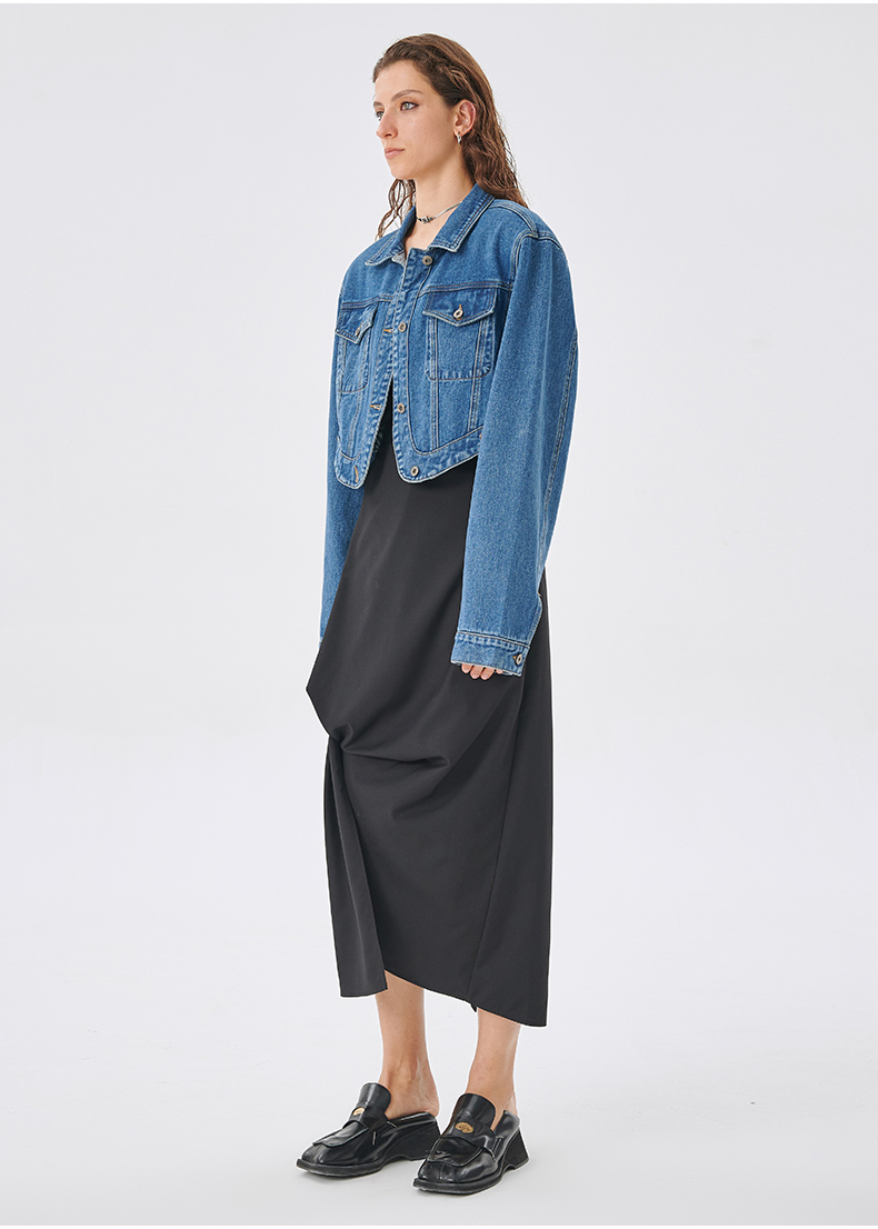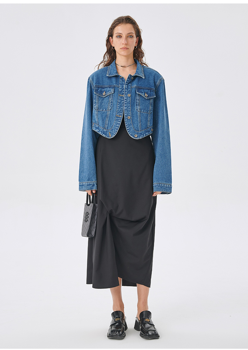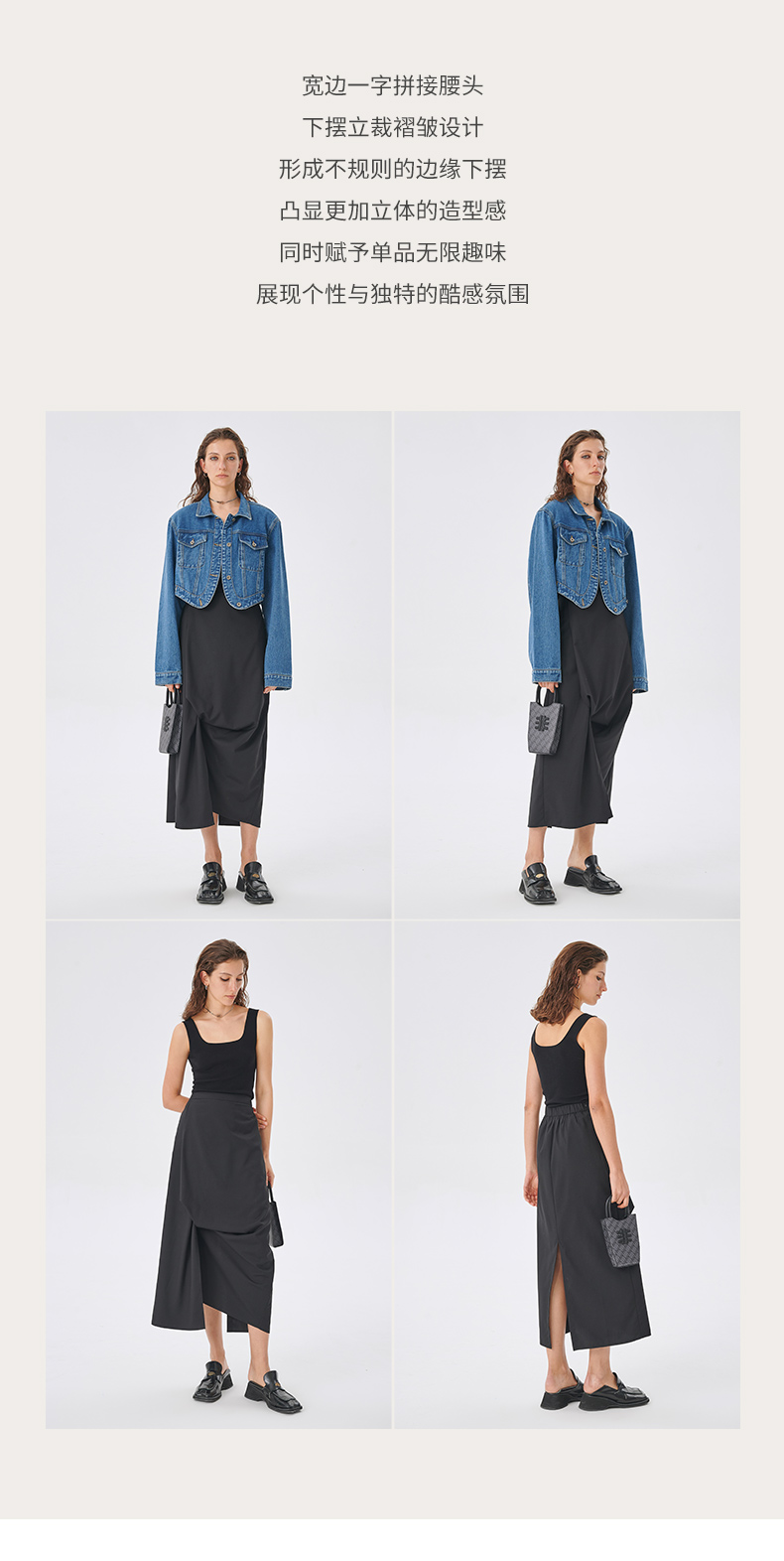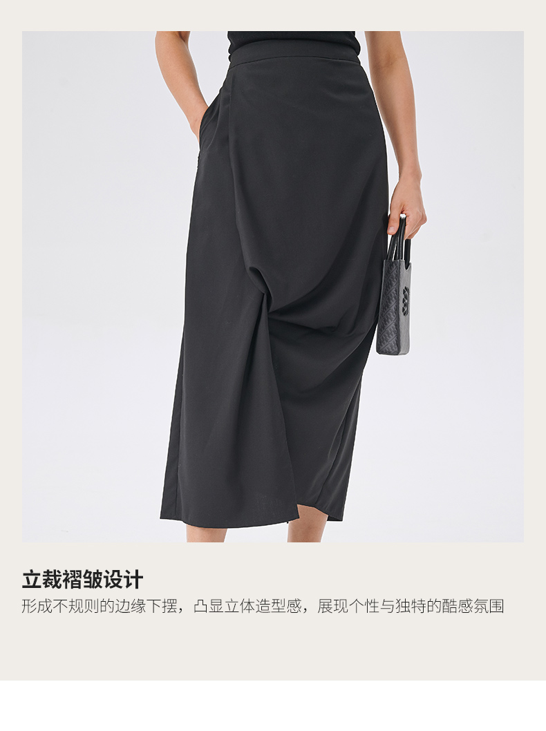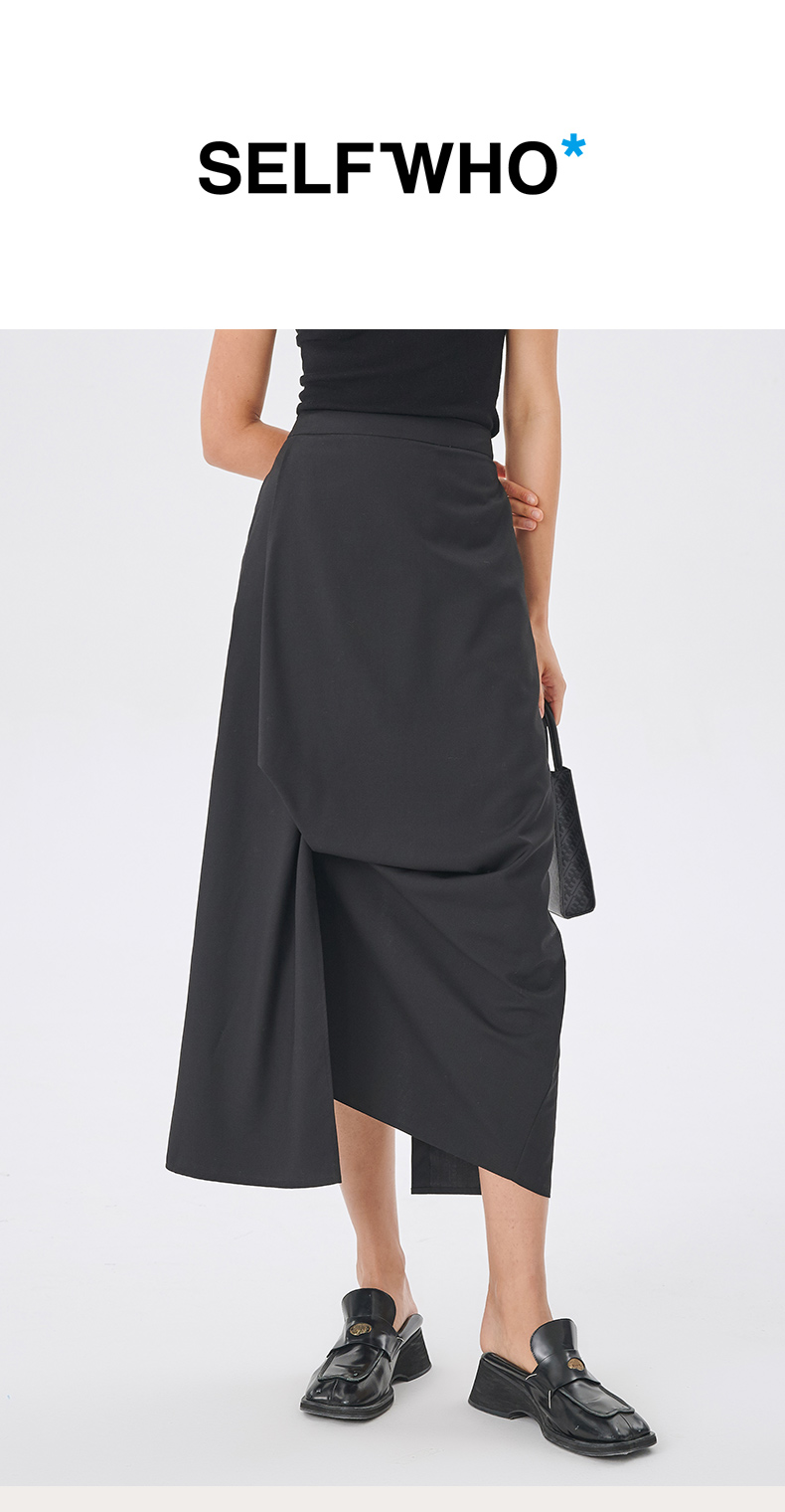 Self Who2023春季新款垂坠感不规则褶皱半身裙简约气质立体裙子