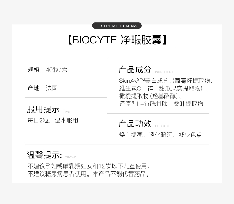【分销】BIOCYTE 碧维斯 葡萄籽胶囊 40粒/瓶 还原原生白 肌肤自发光