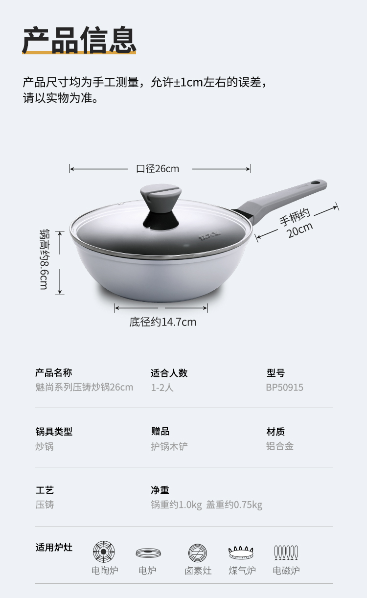 炊大皇 魅尚系列铝合金炒锅26cm 灰色BP50915
