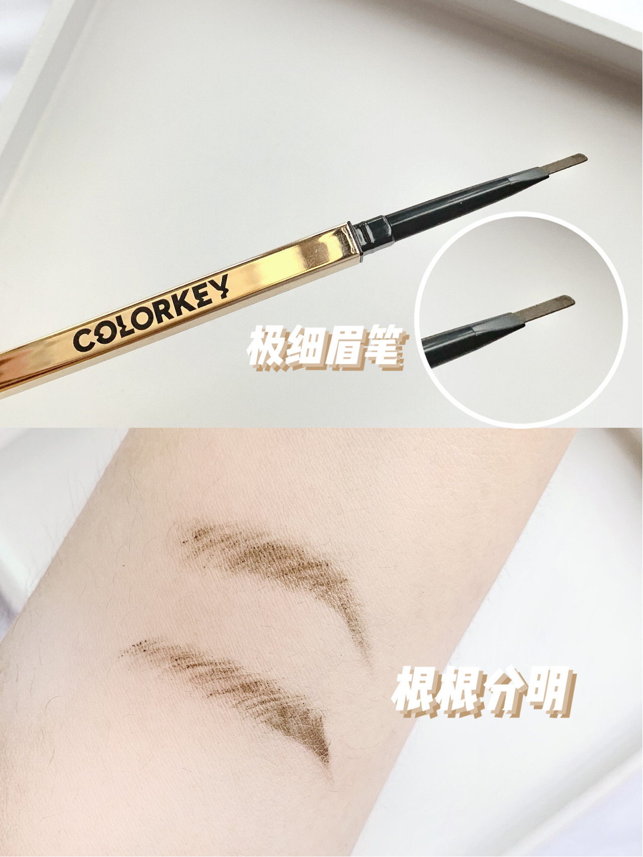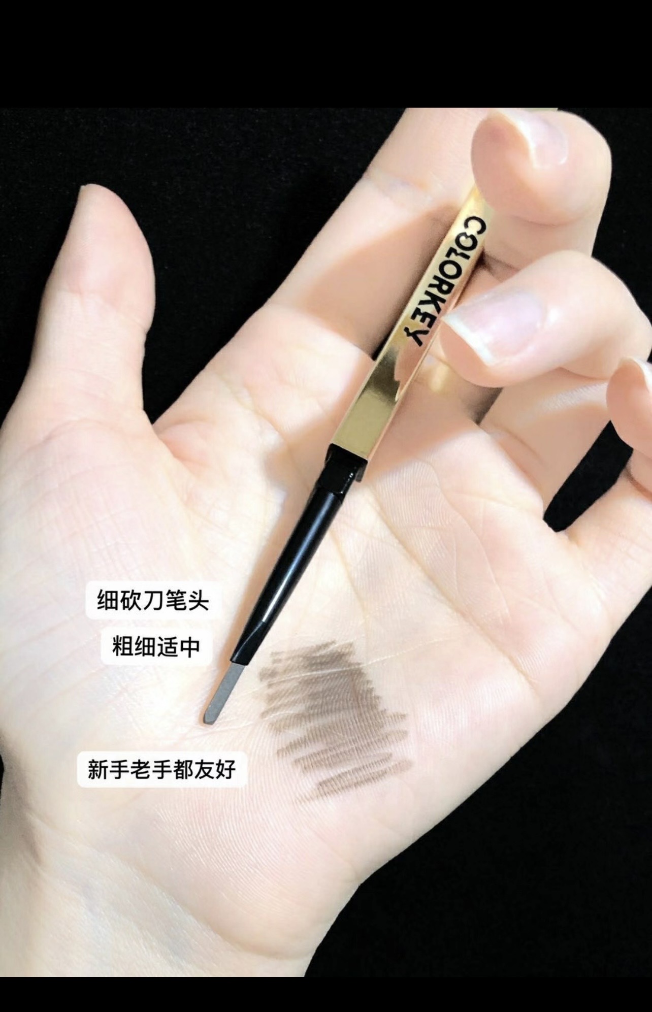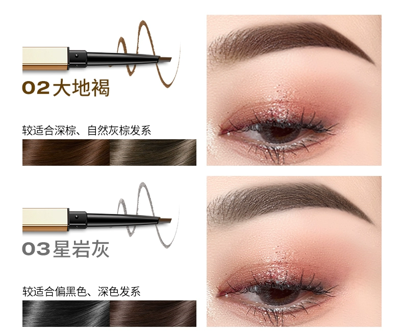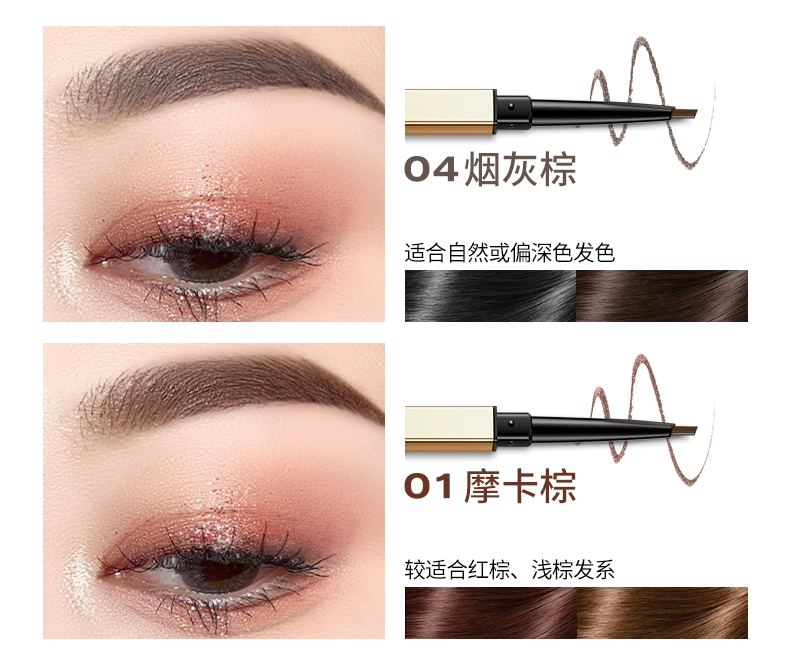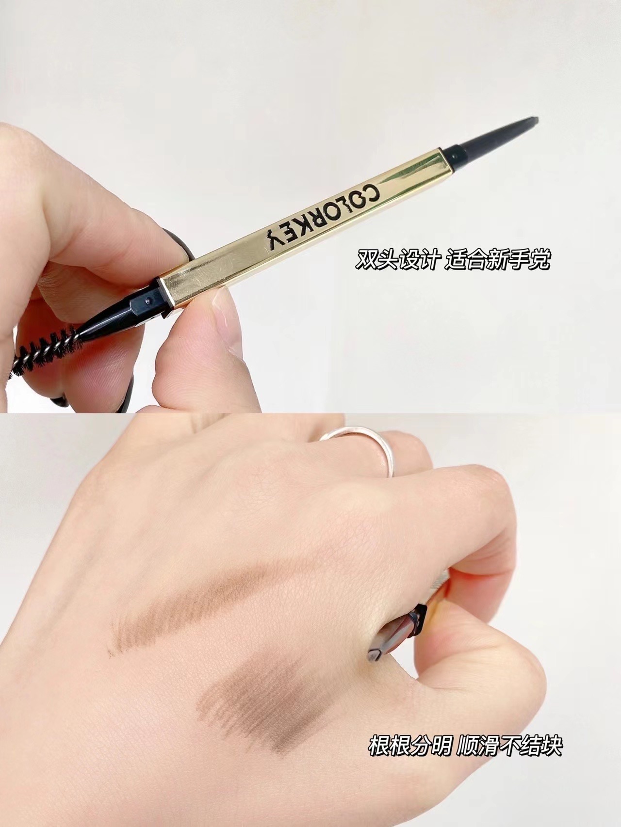 🔥野生眉神器!精致小金筷颜值爆表~ 精选色粉一笔成型,防水防汗不结块 三角切面精准勾勒根根分明的毛流感 自带螺旋刷晕染超自然! 【Colorkey珂拉琪 立体廓型素描眉笔】