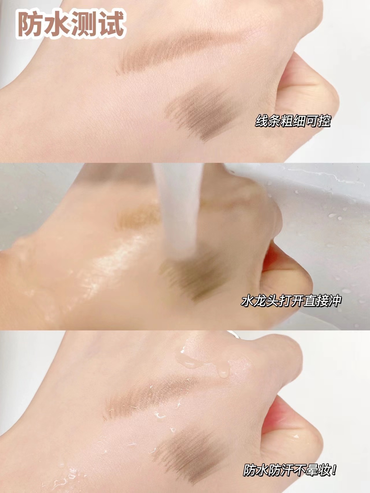防水测试get!用水冲也不易晕染脱妆,夏天暴汗也不带怕的