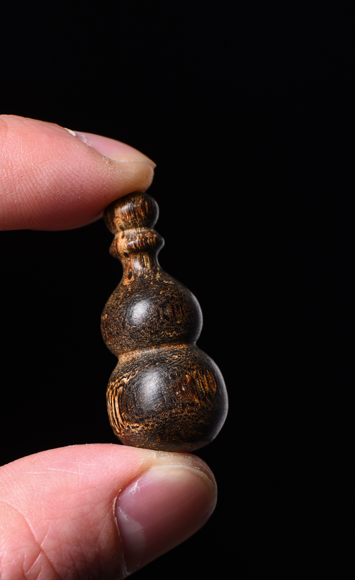 此款葫芦,来自越南芽庄,这几颗是同一根料,全部都是树心老料,历经岁月沉淀,油脂丰润如墨,入水即沉,乃沉香中的至臻之品。