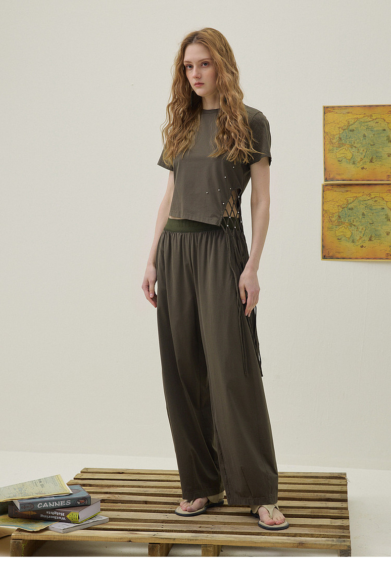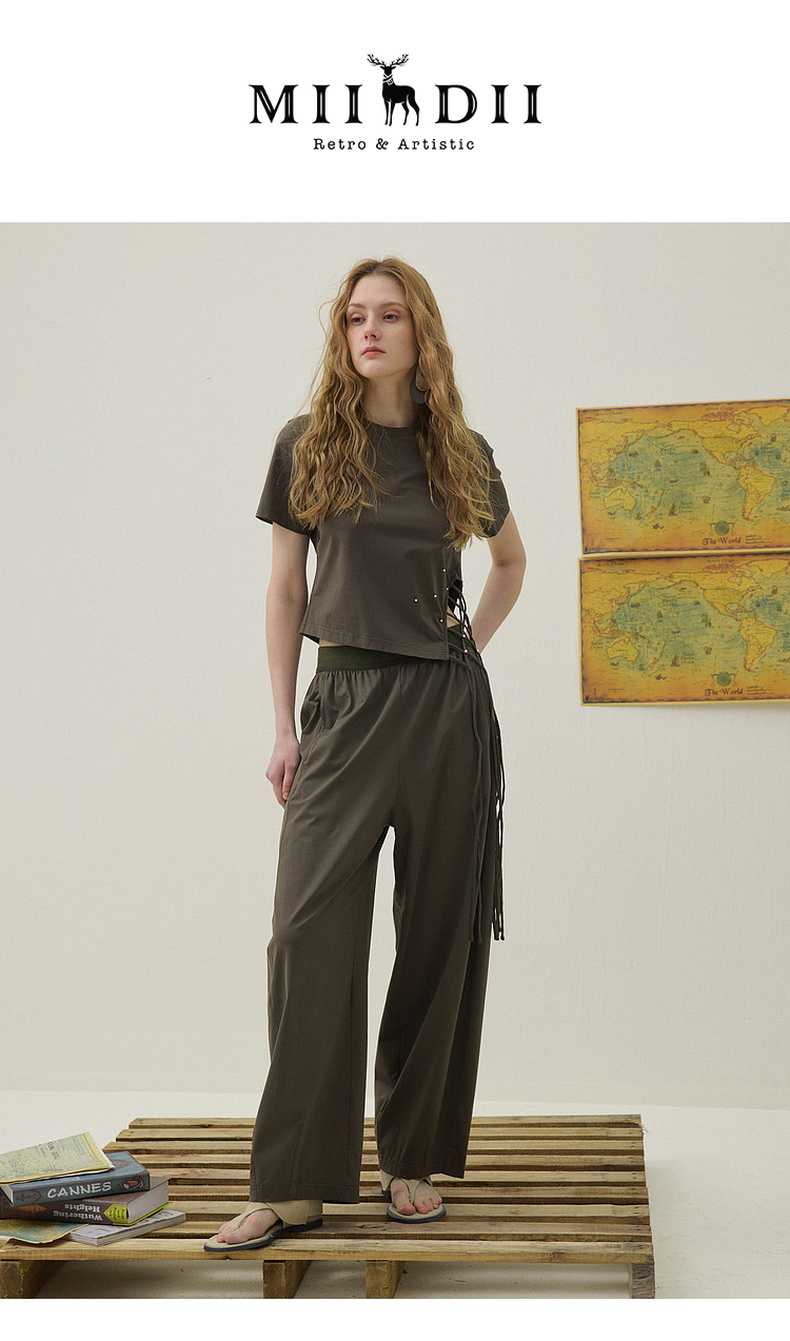 谜底橡筋腰香蕉裤长裤2026年夏季新品柔软舒适松弛感女262MK0532