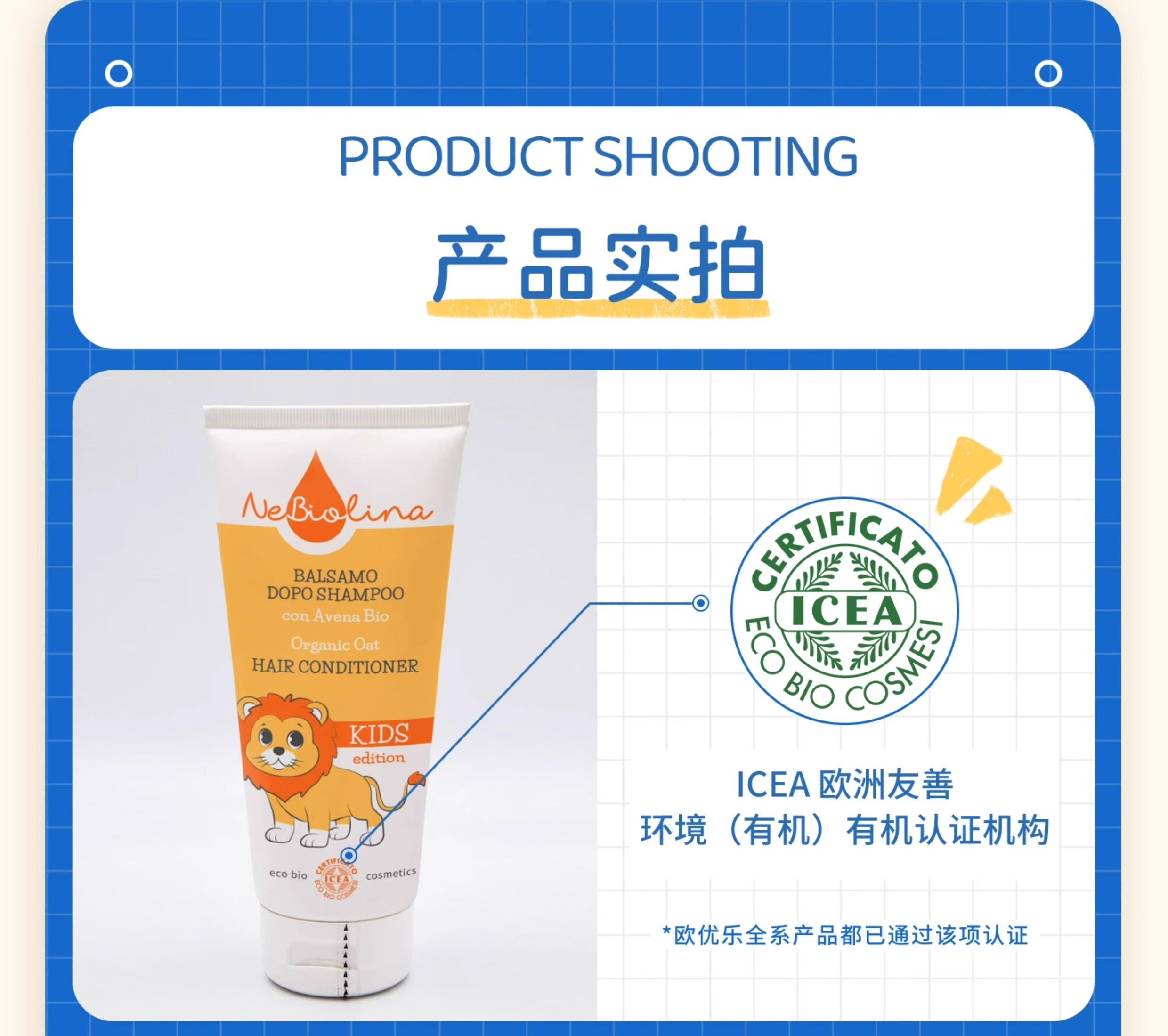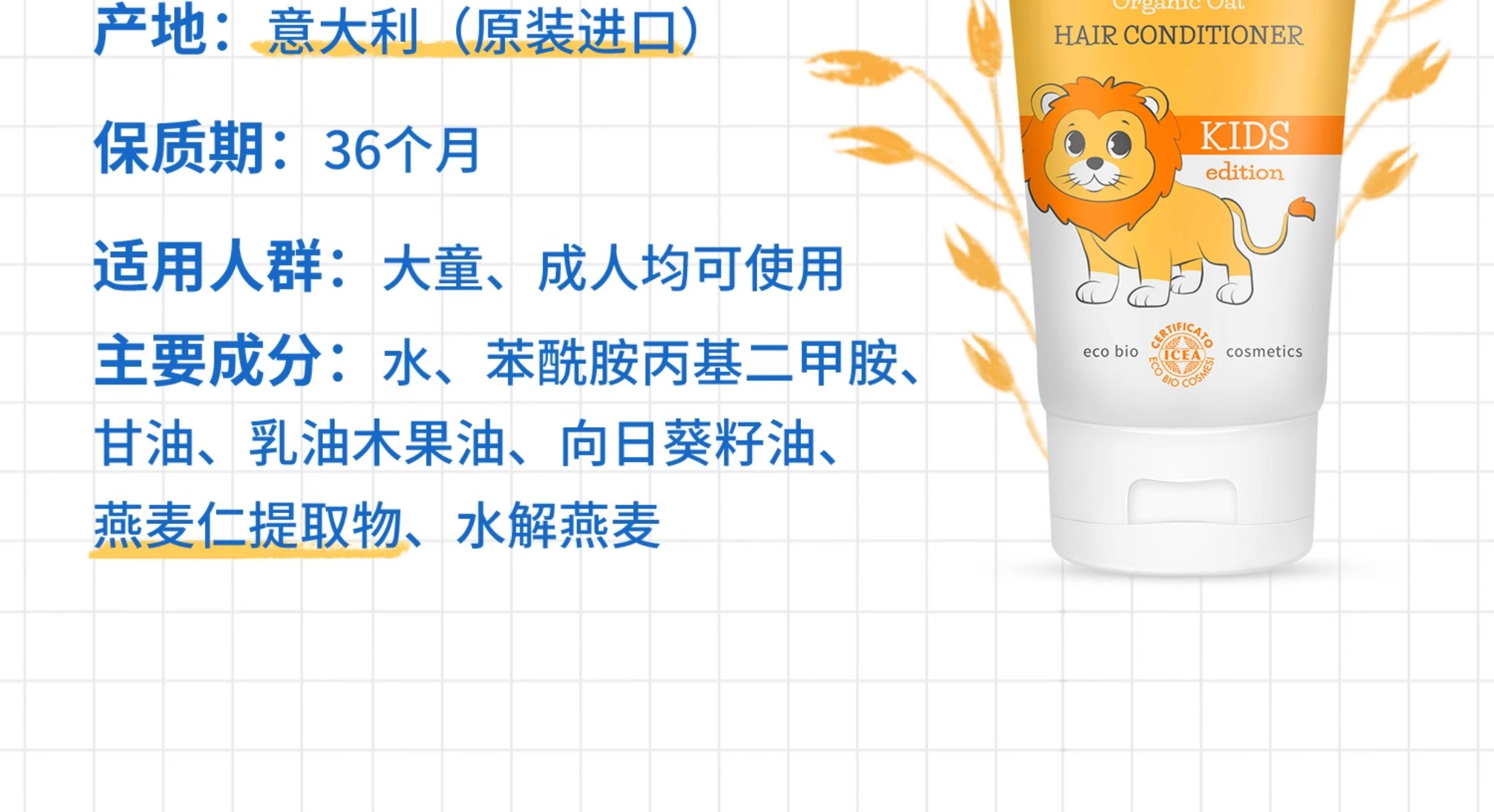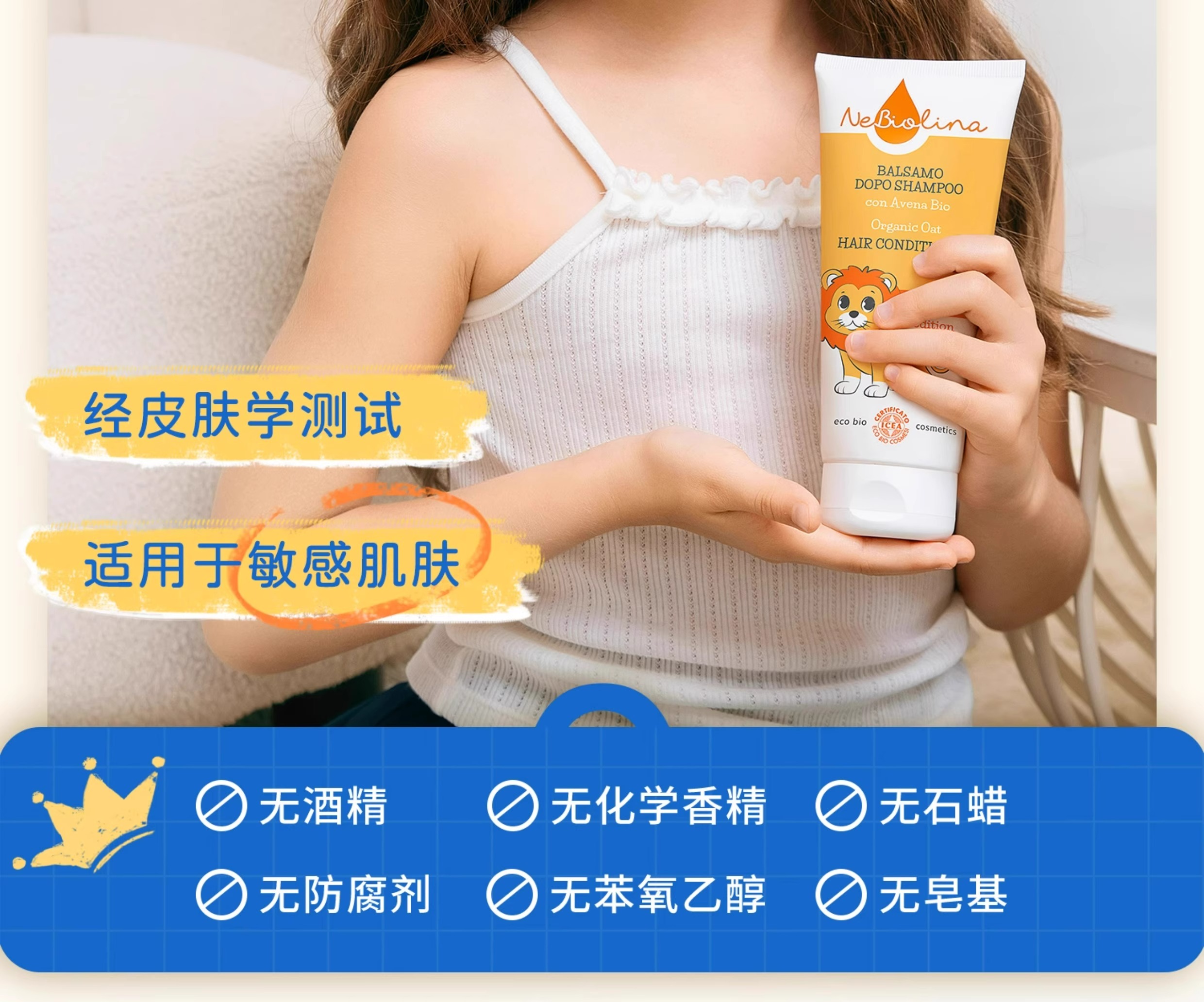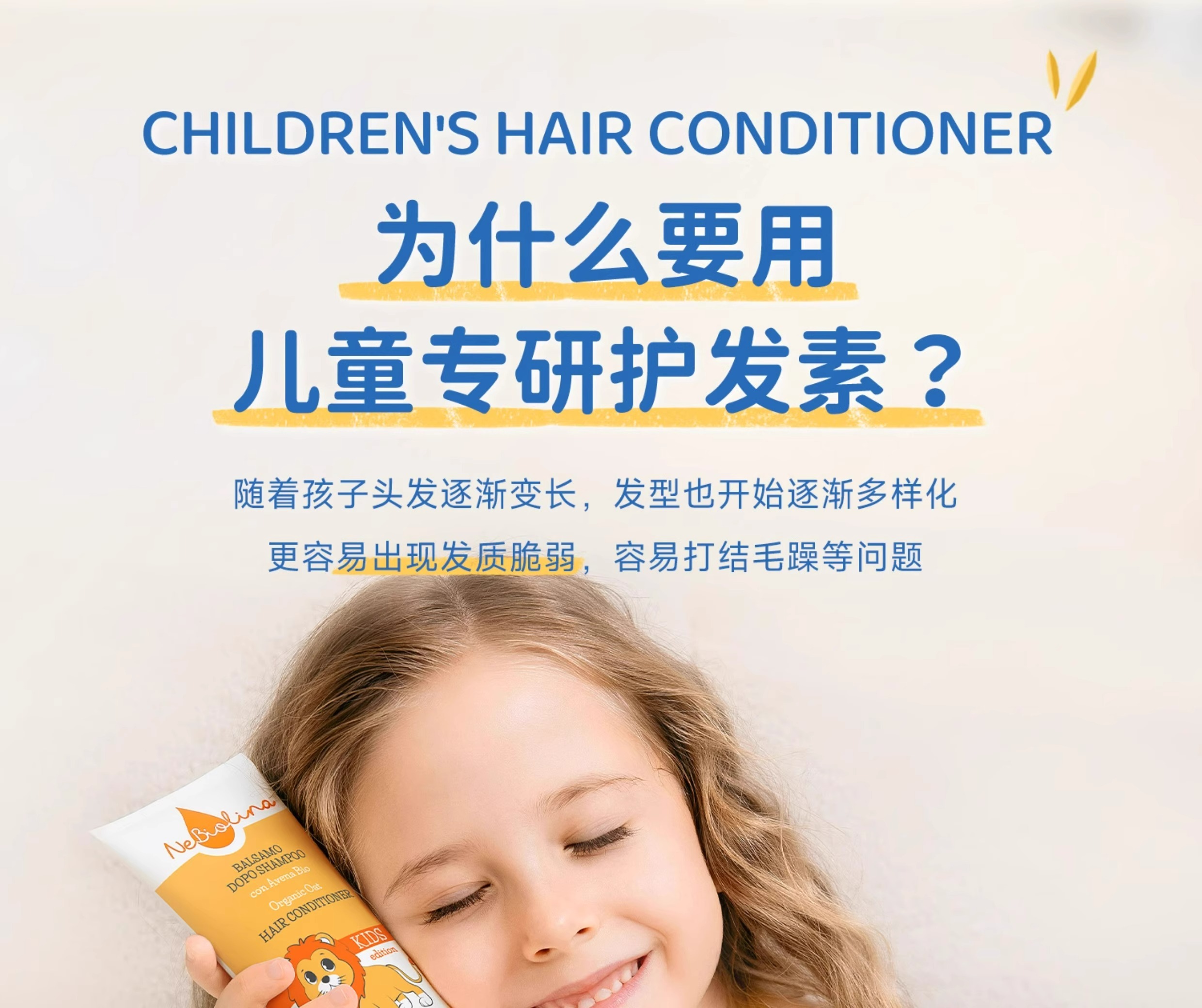 Nebiolina欧优乐护发素200ml意大利原装进口中大童成人柔顺亮泽