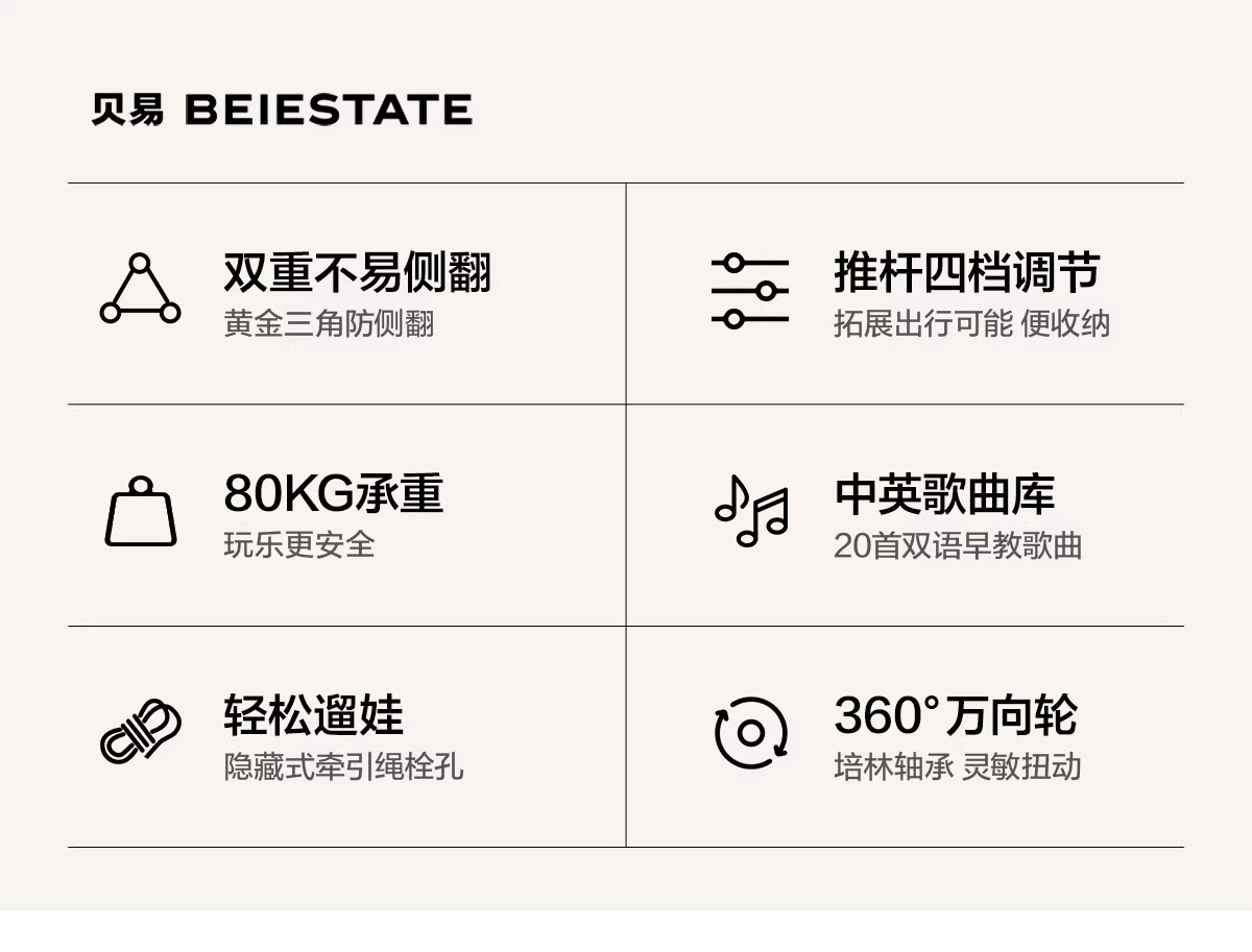 - 「BEIESTATE贝易」以极简设计为风格,主打兼顾设计、品 质和性价比的母婴产品,以创造极致细腻、不张扬、 不世俗的当代母婴用具,为用户日常亲子生活与幼儿 的启蒙早教提供新选择。