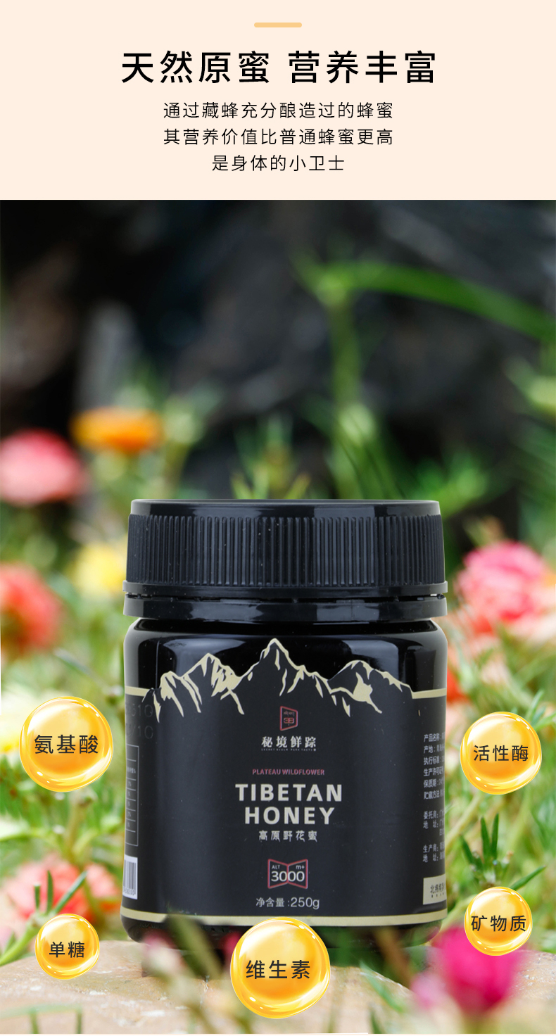 北纬纯净食品|38°高原野花蜜正宗藏蜜 原蜜蜂蜜250g