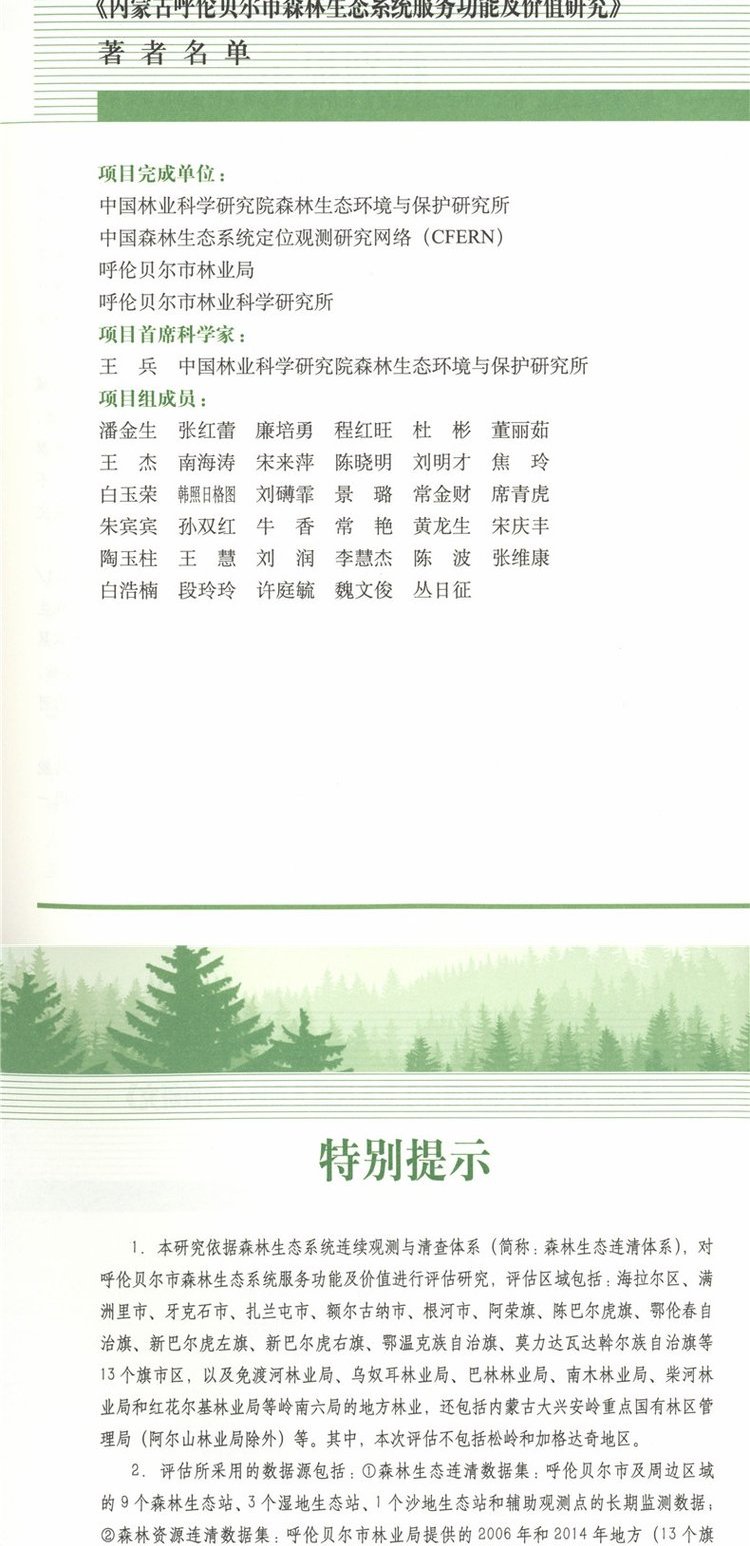 内蒙古呼伦贝尔市森林生态系统服务功能及价值研究 0084 潘金生中国森林生态系统连续观测与清查及绿色核算系列丛书中国林业出版社