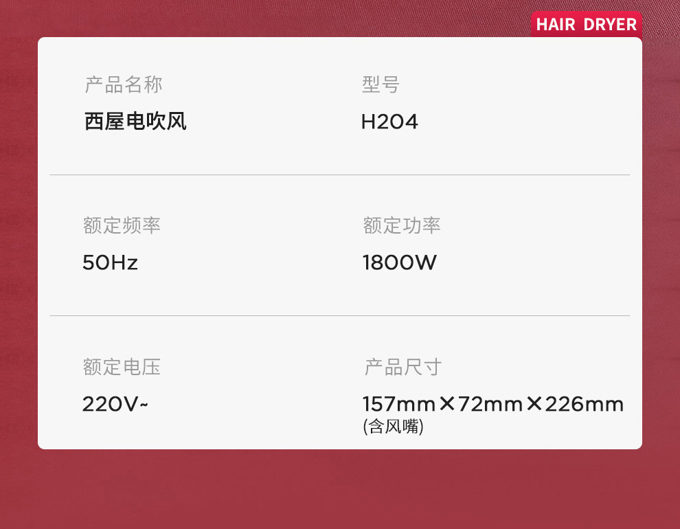 西屋(Westinghouse) 吹风机 家用负离子电吹风 H204