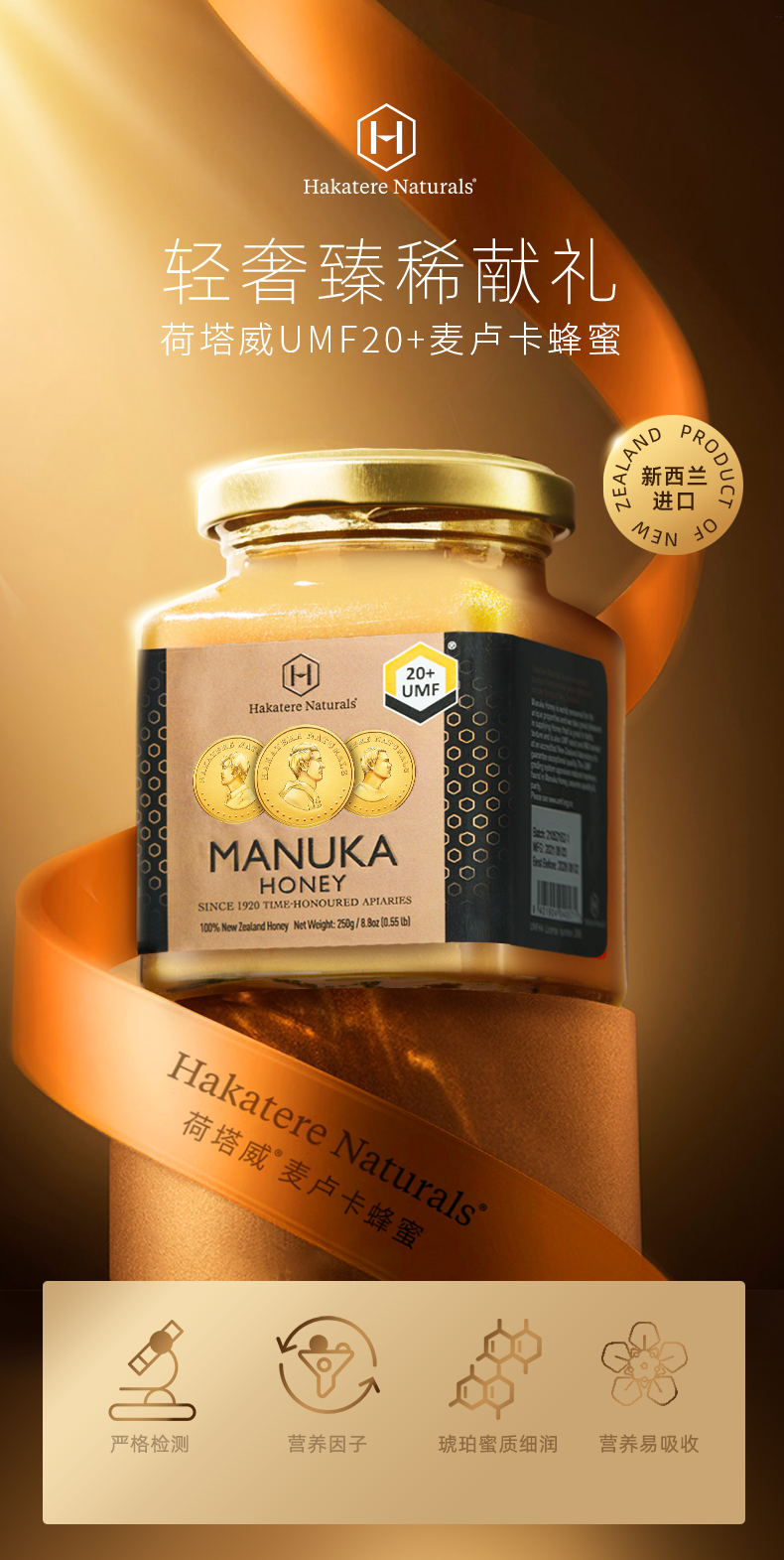 【高端奢宠礼盒装】荷塔威UMF20+麦卢卡蜂蜜 250g单/双瓶礼盒 深度养护 新西兰进口 送礼+选