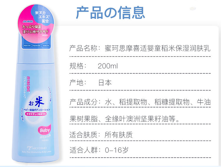 MICCOSMO 蜜珂思摩 喜适婴童稻米保湿润肤乳 200ml