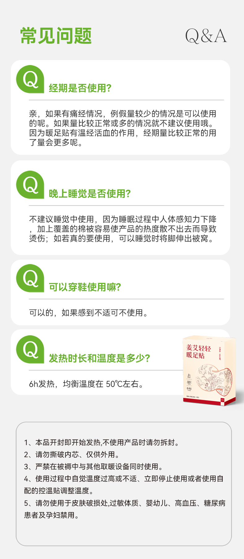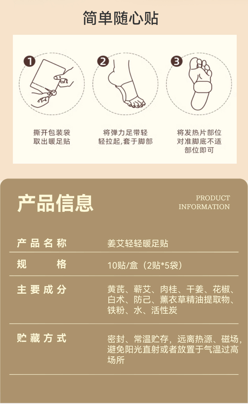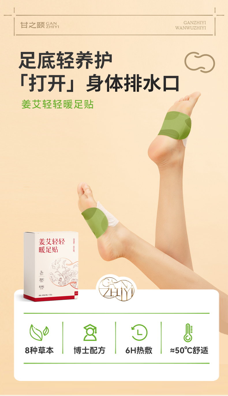 甘之颐 姜艾轻轻暖足贴 10贴/盒 艾草足贴蕲艾肉桂干姜热敷发热贴足贴穴位贴
