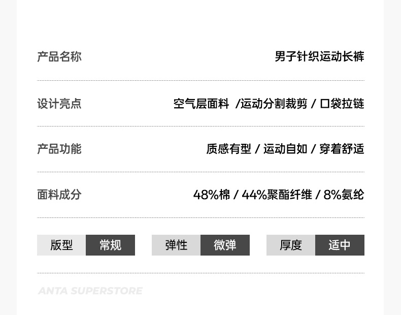 超级安踏运动裤男子秋季新款空气棉跑步长裤针织休闲裤152537301U