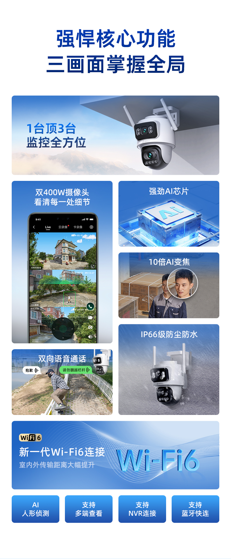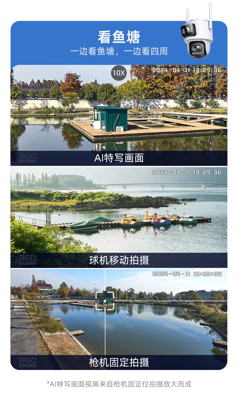 【专属】360智能摄像机6C双摄版 一机双画 双200万镜头 微光夜视 AI移动侦测 360度全景画面 双向通话功能