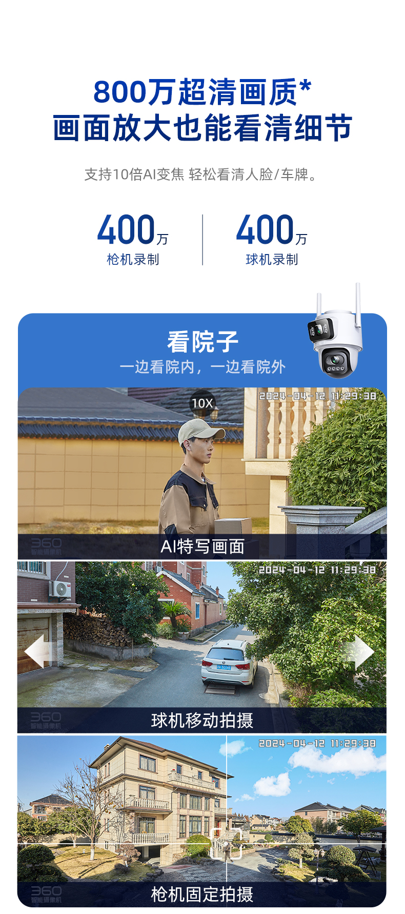 【专属】360云台摄像机8Pro 4K 超清画质 星光级超微光全彩 360°全景视角 蓝牙闪连配网 人形侦测警报 镜头隐私遮蔽