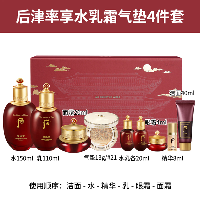 水150ml+乳110ml++面霜20ml+气垫13g+眼霜4ml+水20ml+乳20ml+精华8ml+洁面40ml/套