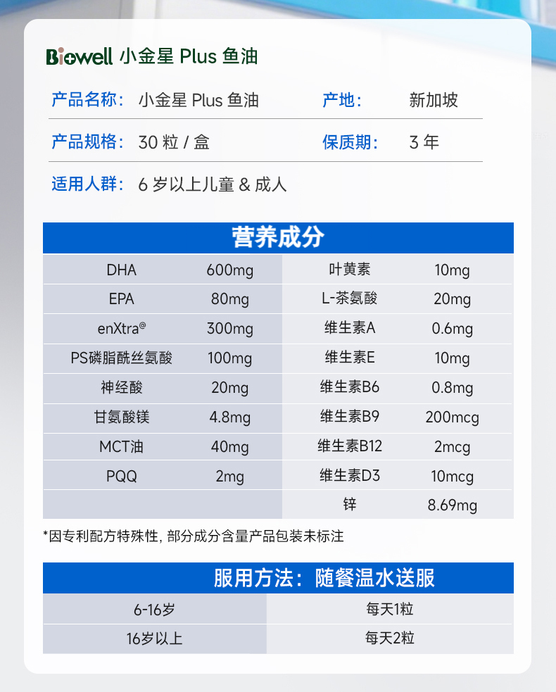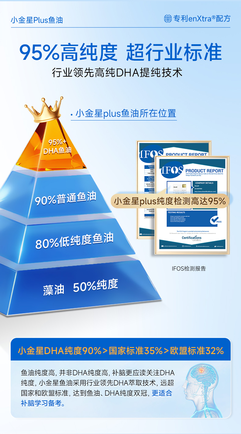 优选丨小金星加强plus+DHA专利补脑鱼油记忆专注力双重呵护