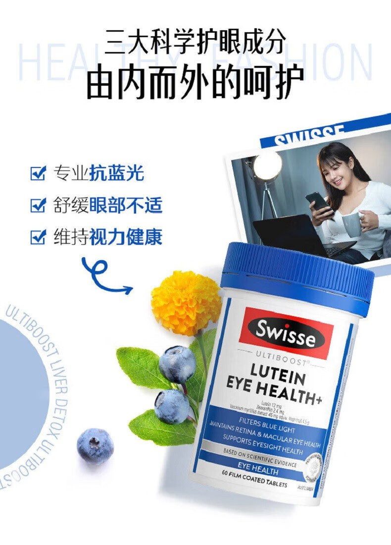 【保税仓】Swisse Ultiboost叶黄素成人护眼片越橘片30片 新旧包装随机发