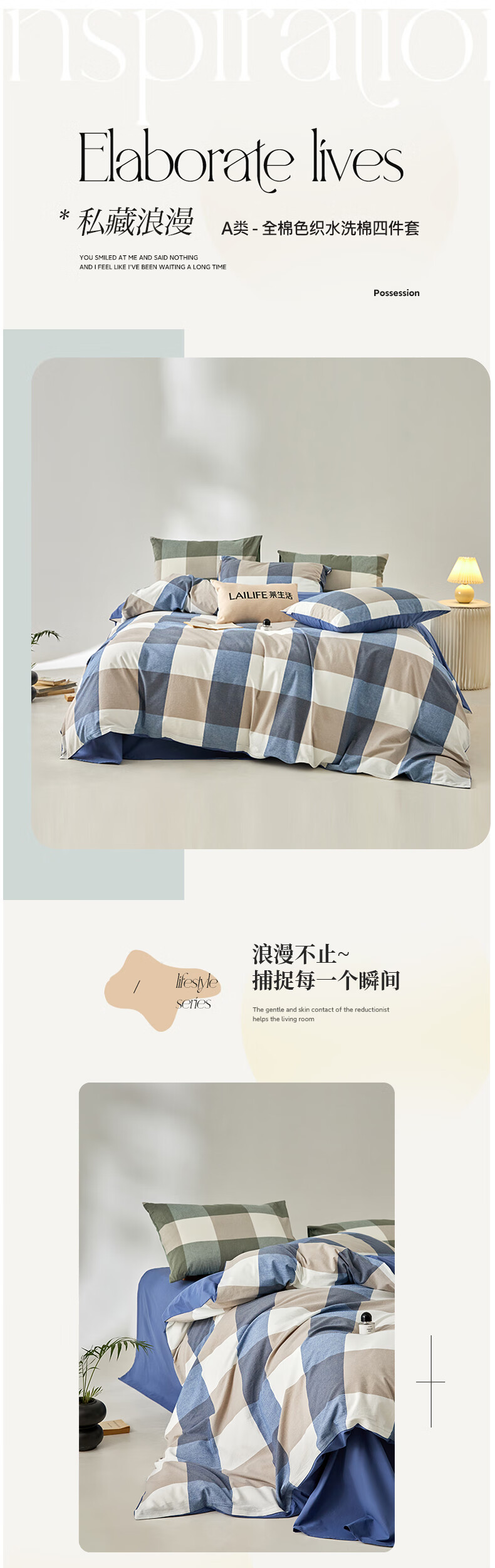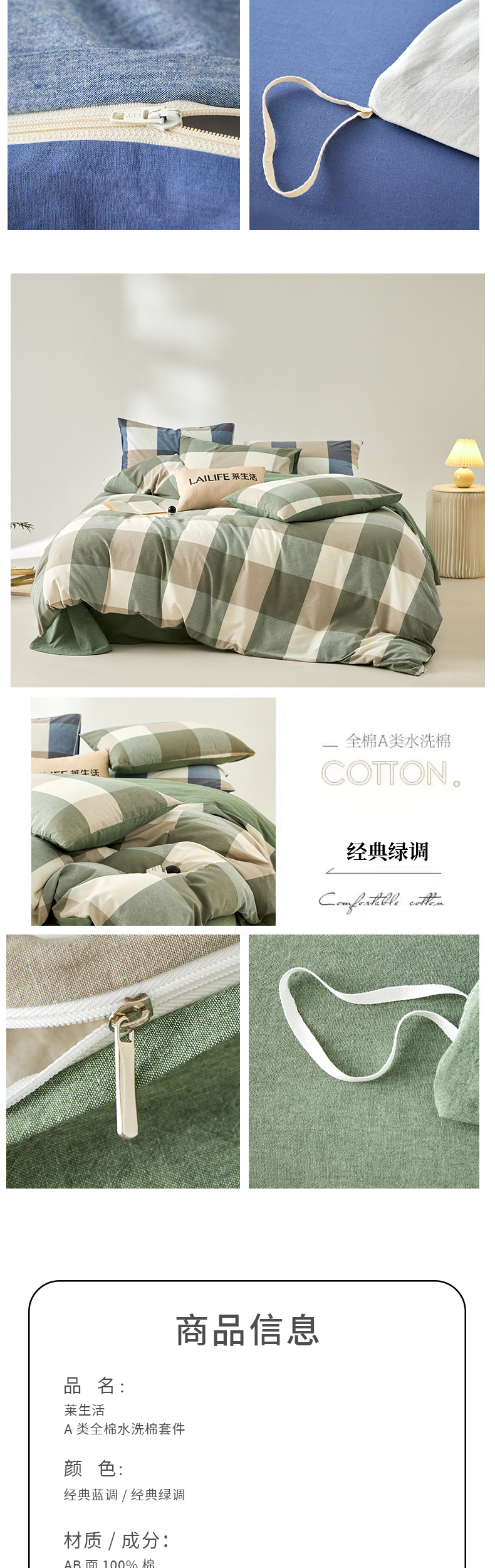 莱生活 A类全棉水洗棉套件 200*230cm