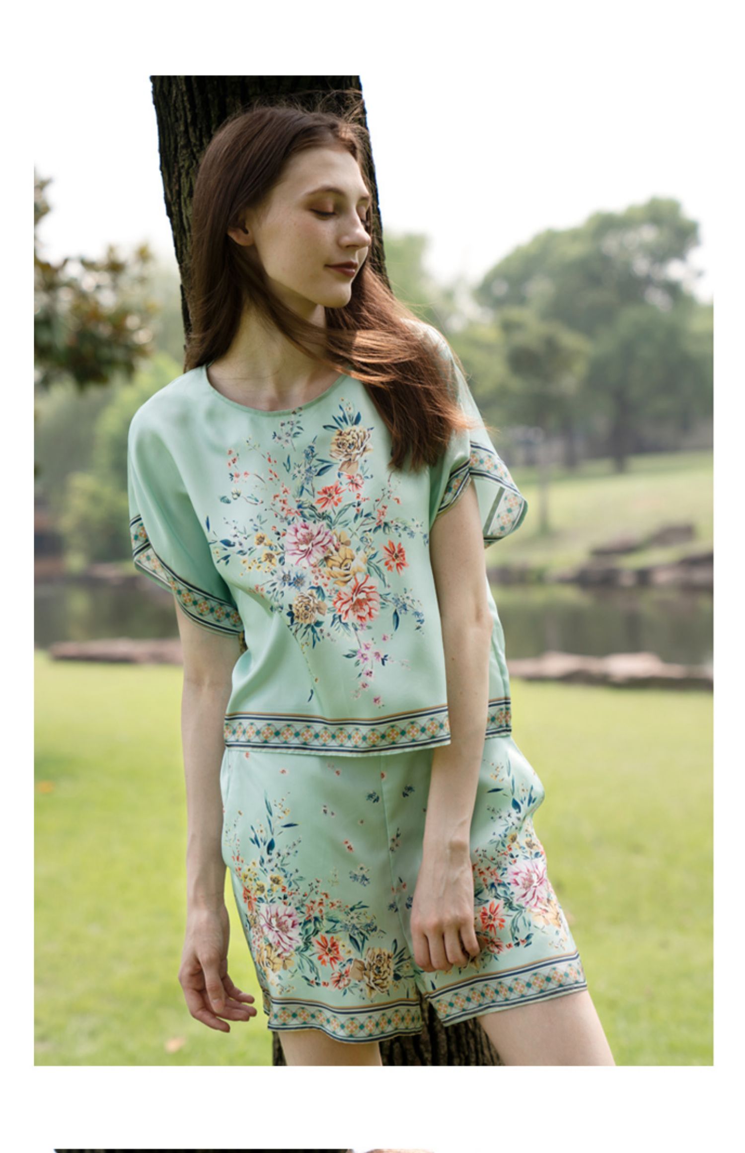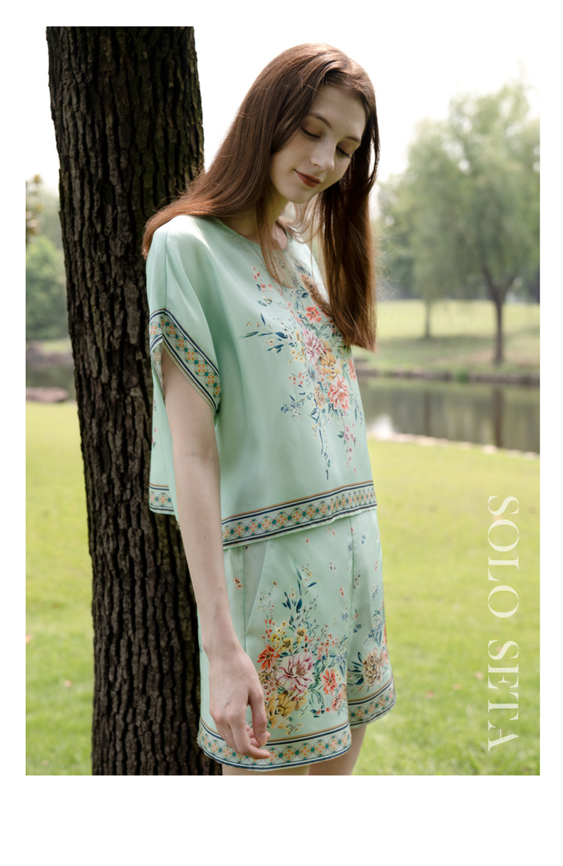 Solo seta原创真丝睡衣两件套秋冬桑蚕丝睡衣短袖款家居服女丝绸