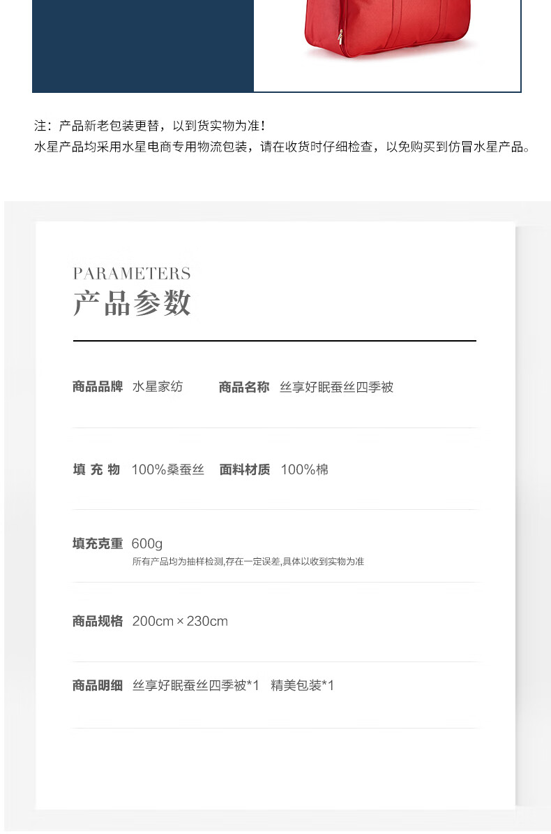 水星家纺 DH丝享美眠蚕丝四季被124434
