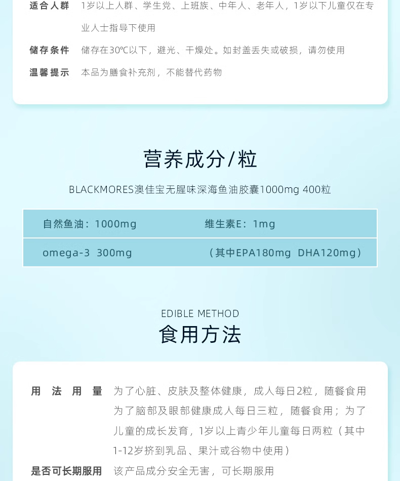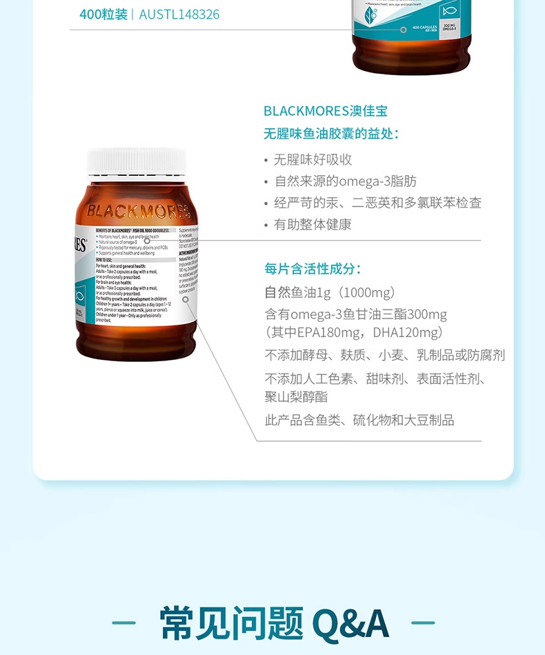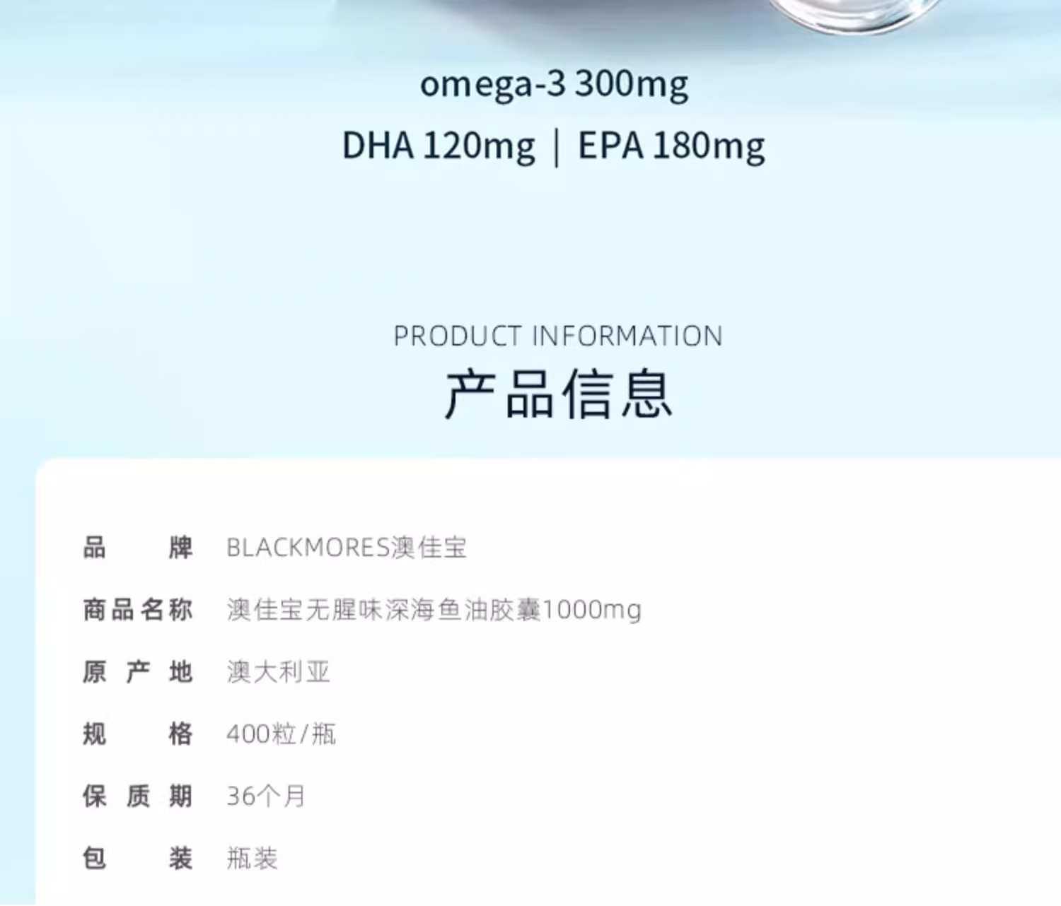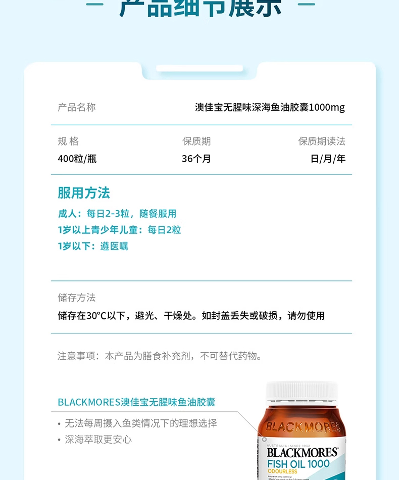 【保税仓】澳佳宝BLACKMORES无腥味深海鱼油400粒*2瓶