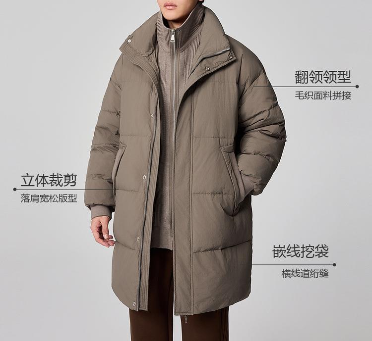 2025男装假两件拼接羽绒服男2025冬款中长款男士羽绒外套88719