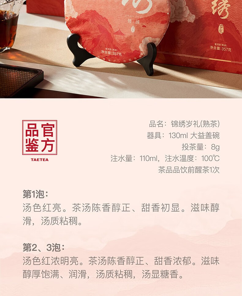 大益茶叶普洱茶礼 锦绣岁礼 熟茶礼盒357g*1盒
