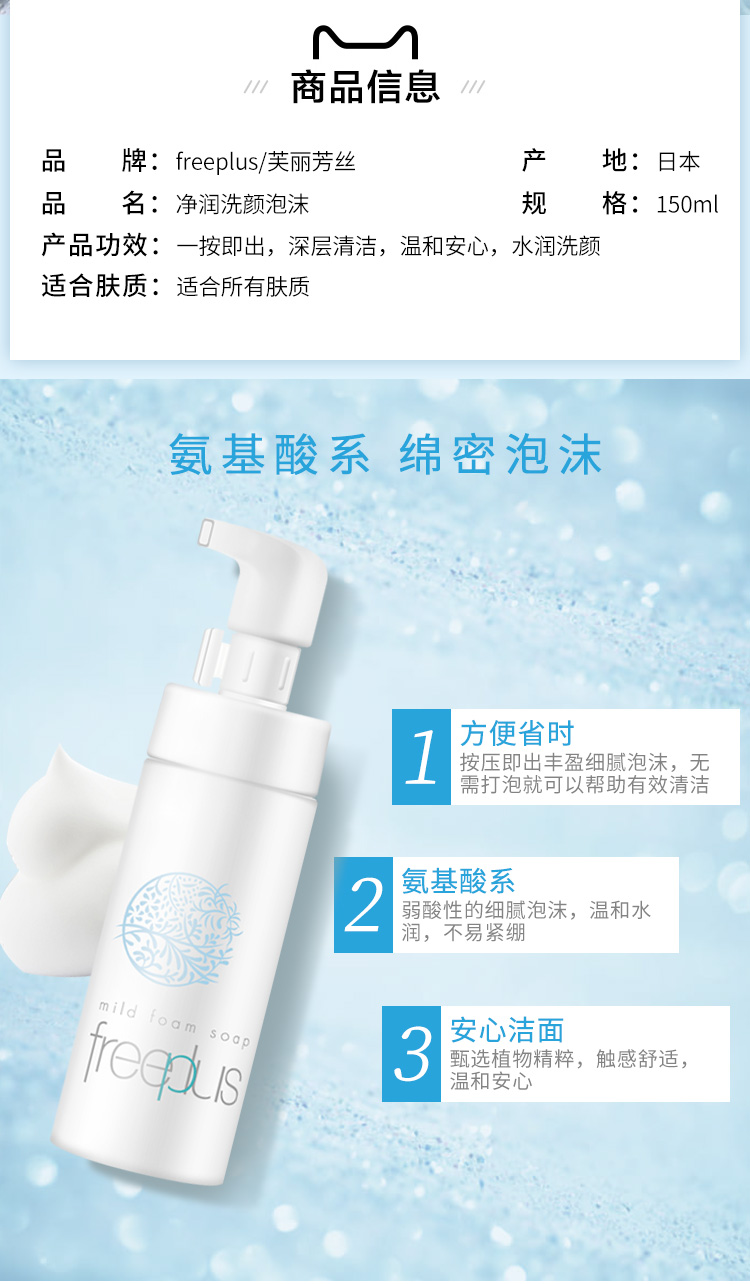 Freeplus芙丽芳丝 净润洗颜泡沫 按压款洗面奶 150ml/瓶