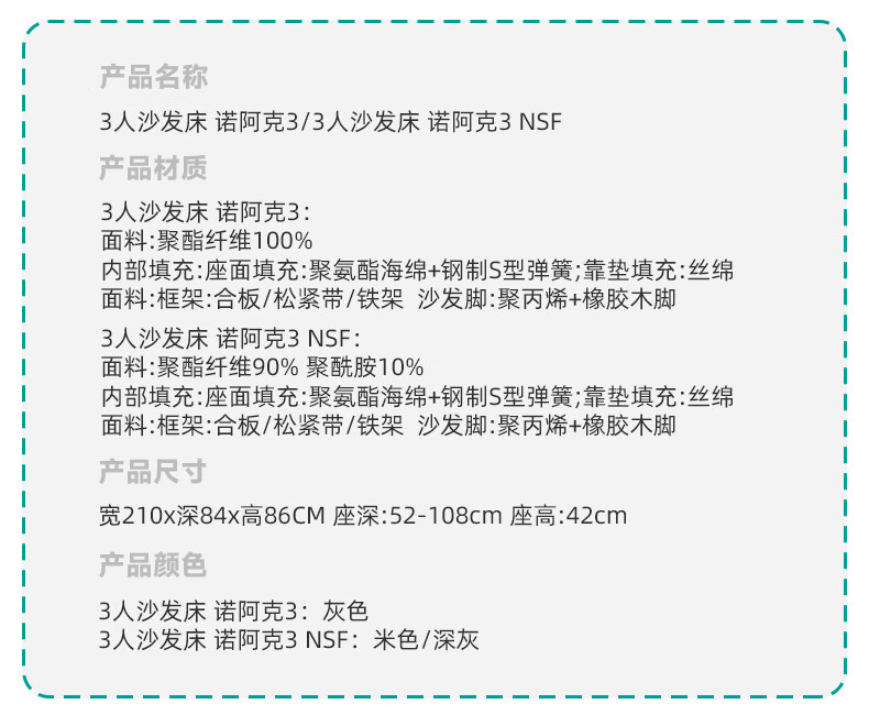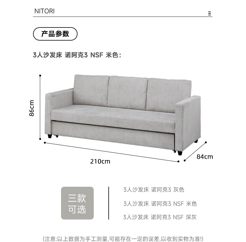 【家具】3人沙发床 诺阿克3 NSF 深灰/米色/灰色
