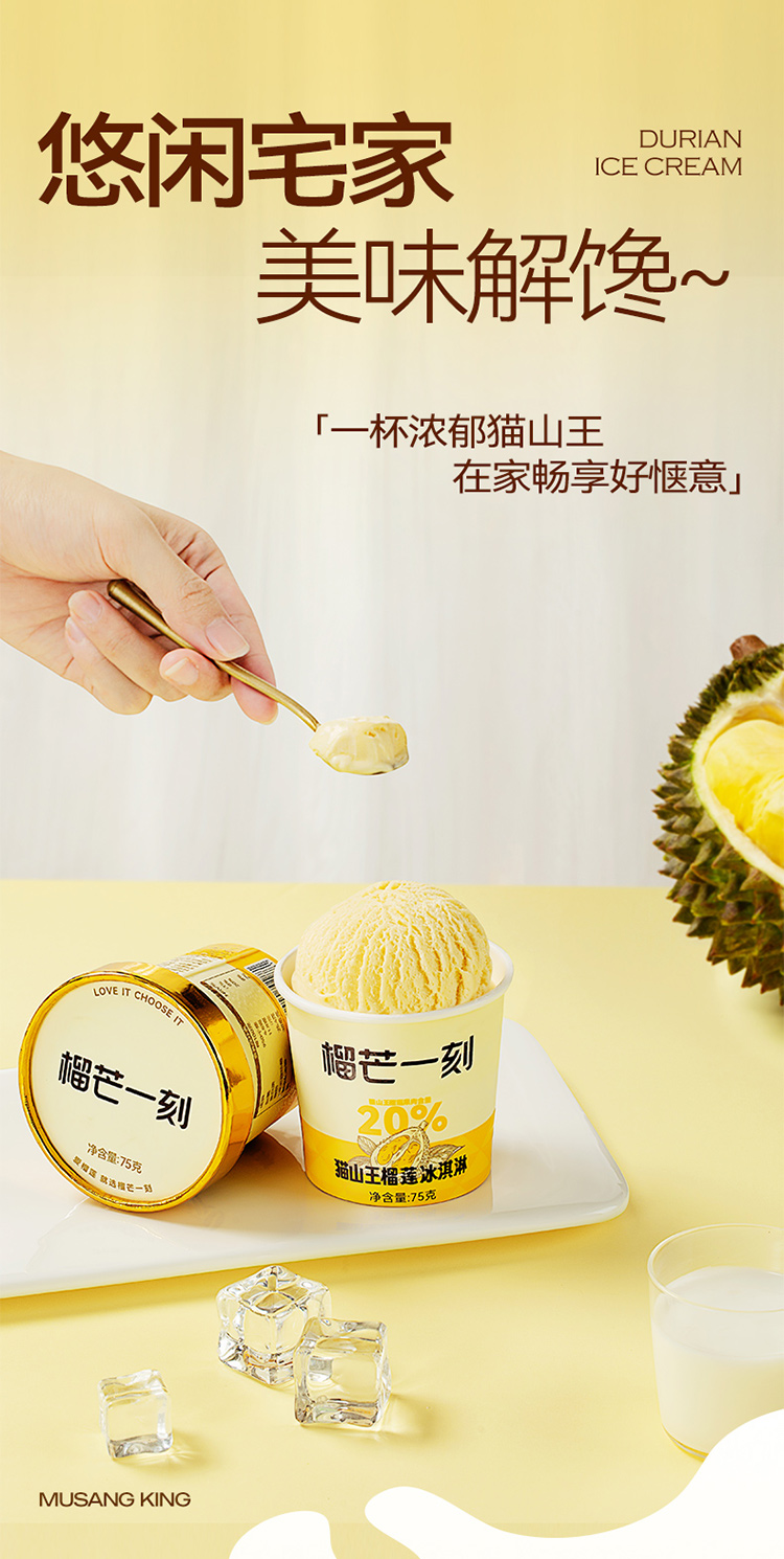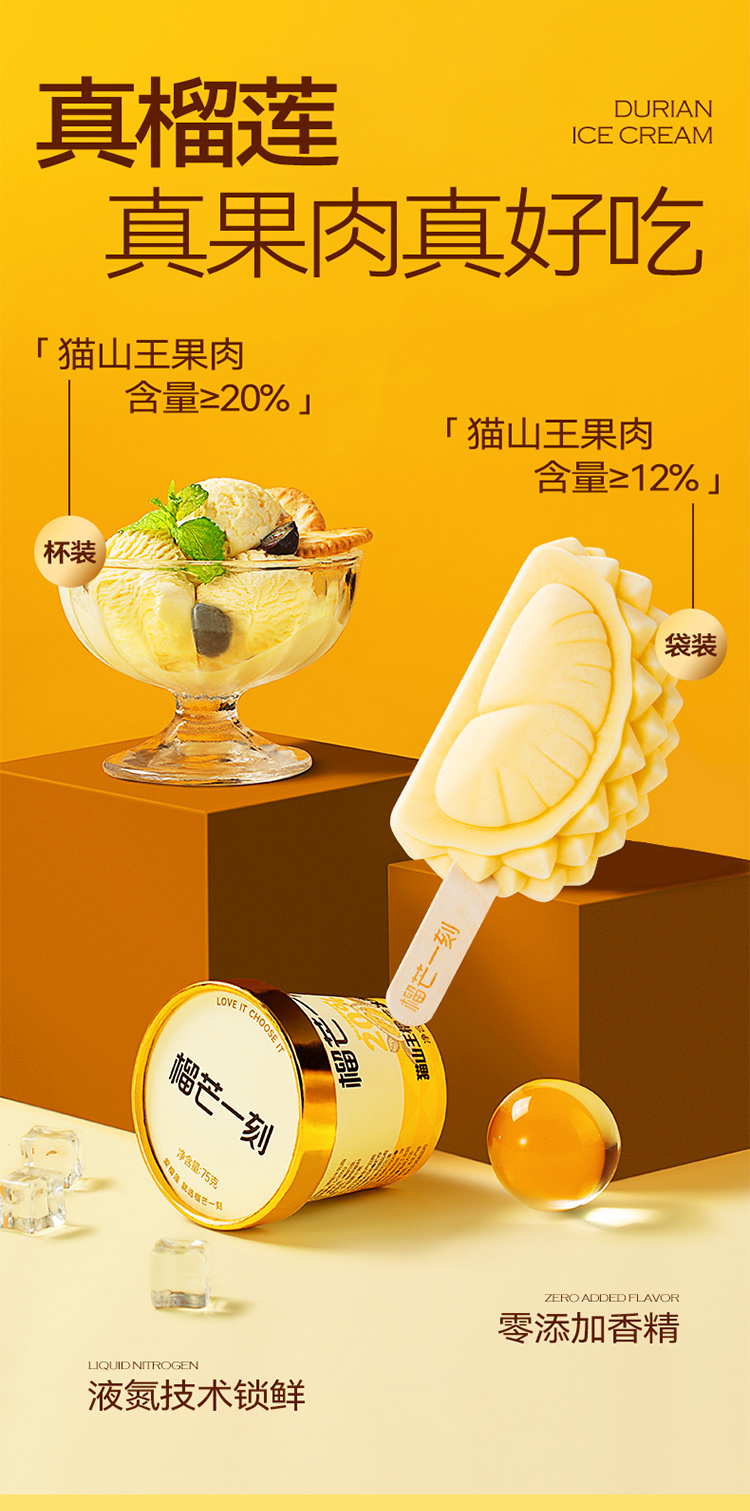 榴芒一刻 猫山王榴莲冰淇淋75gx3杯+猫山王榴莲雪糕70gx4支组合