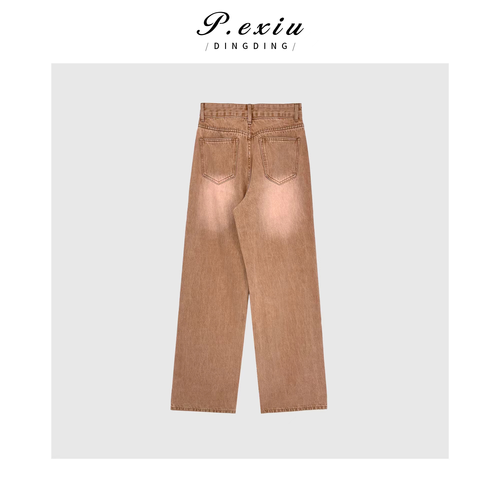 04-3潘依绣丁丁宠粉PanYiXiu/潘依绣高级感水洗渐变美式复古阔腿牛仔裤 D6209