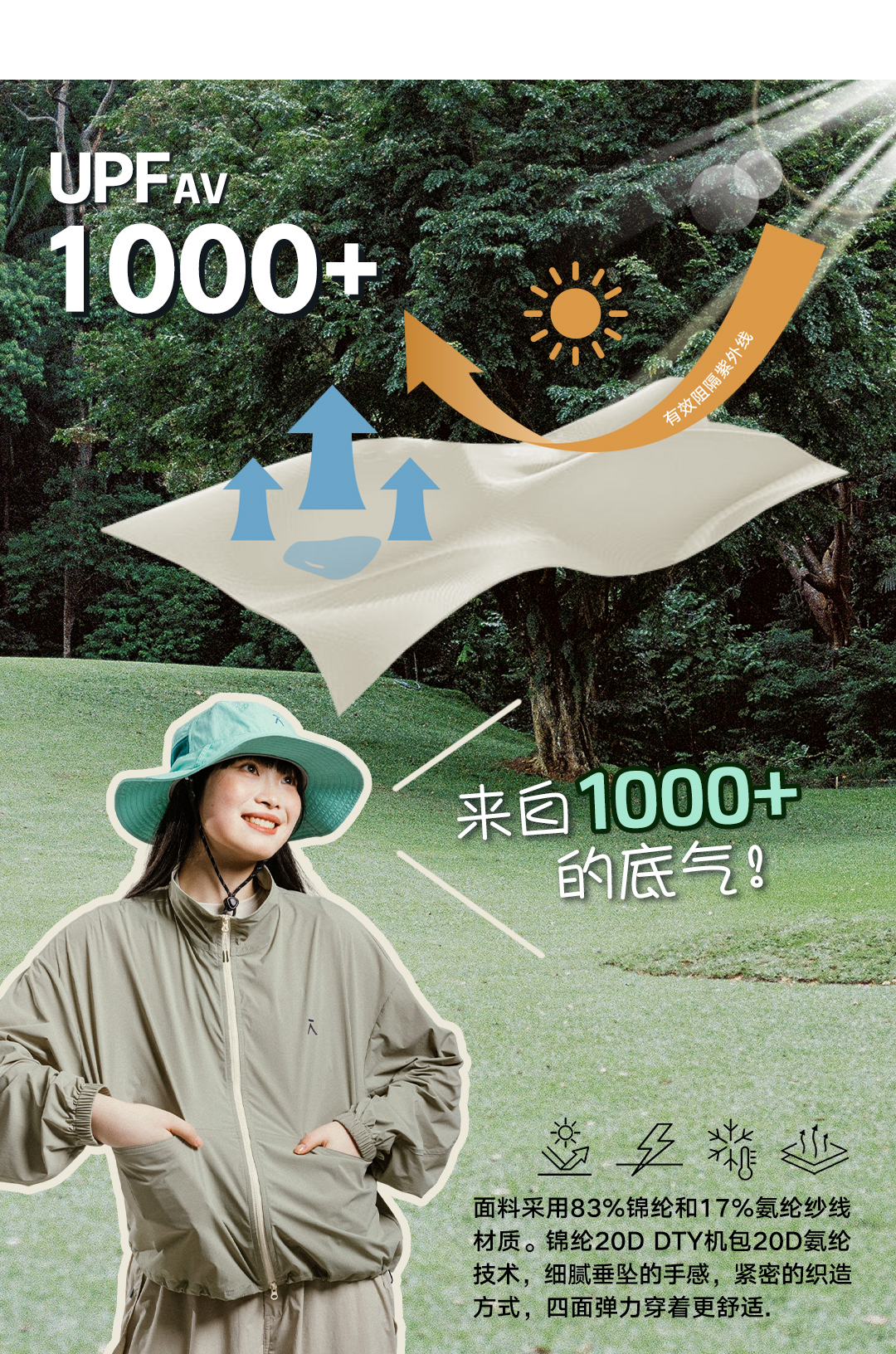 【出游季特惠】ACMEITEM爱棵米 户外防晒衣防泼水凉感UPF1000+高效宽松防晒服女GAG2760803C