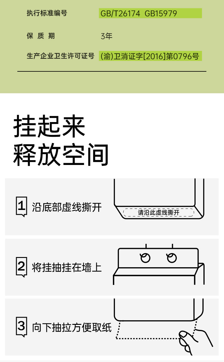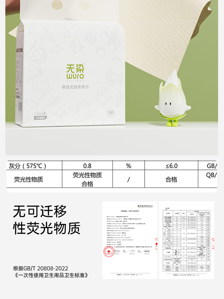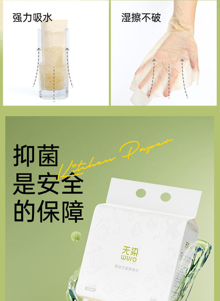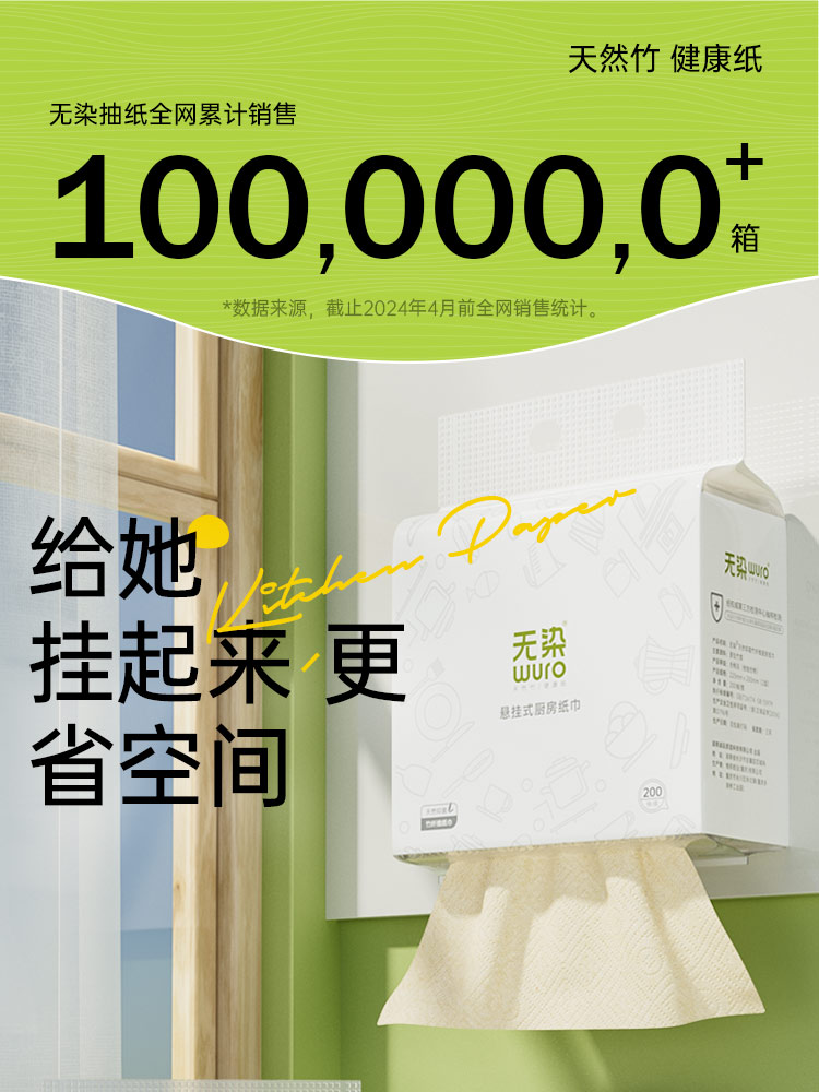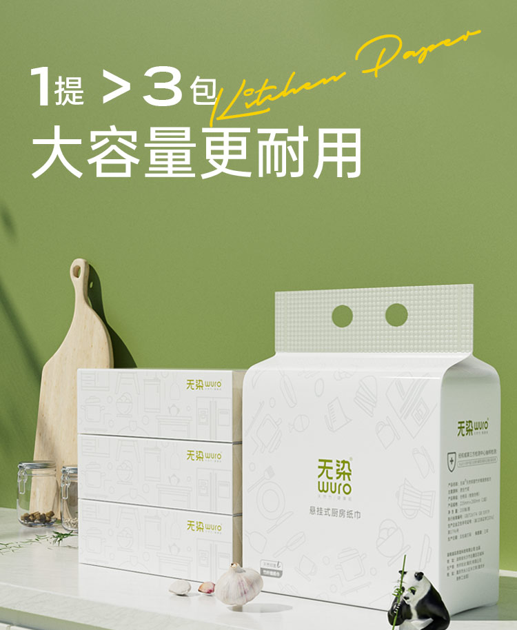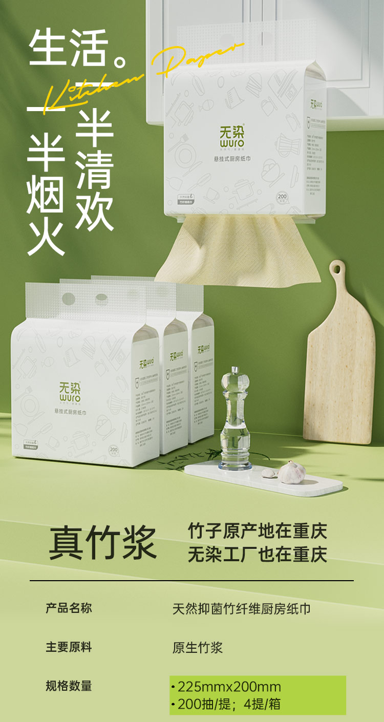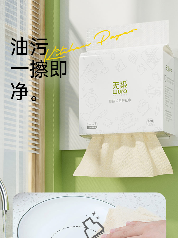 无染竹纤维悬挂式厨房纸巾200抽