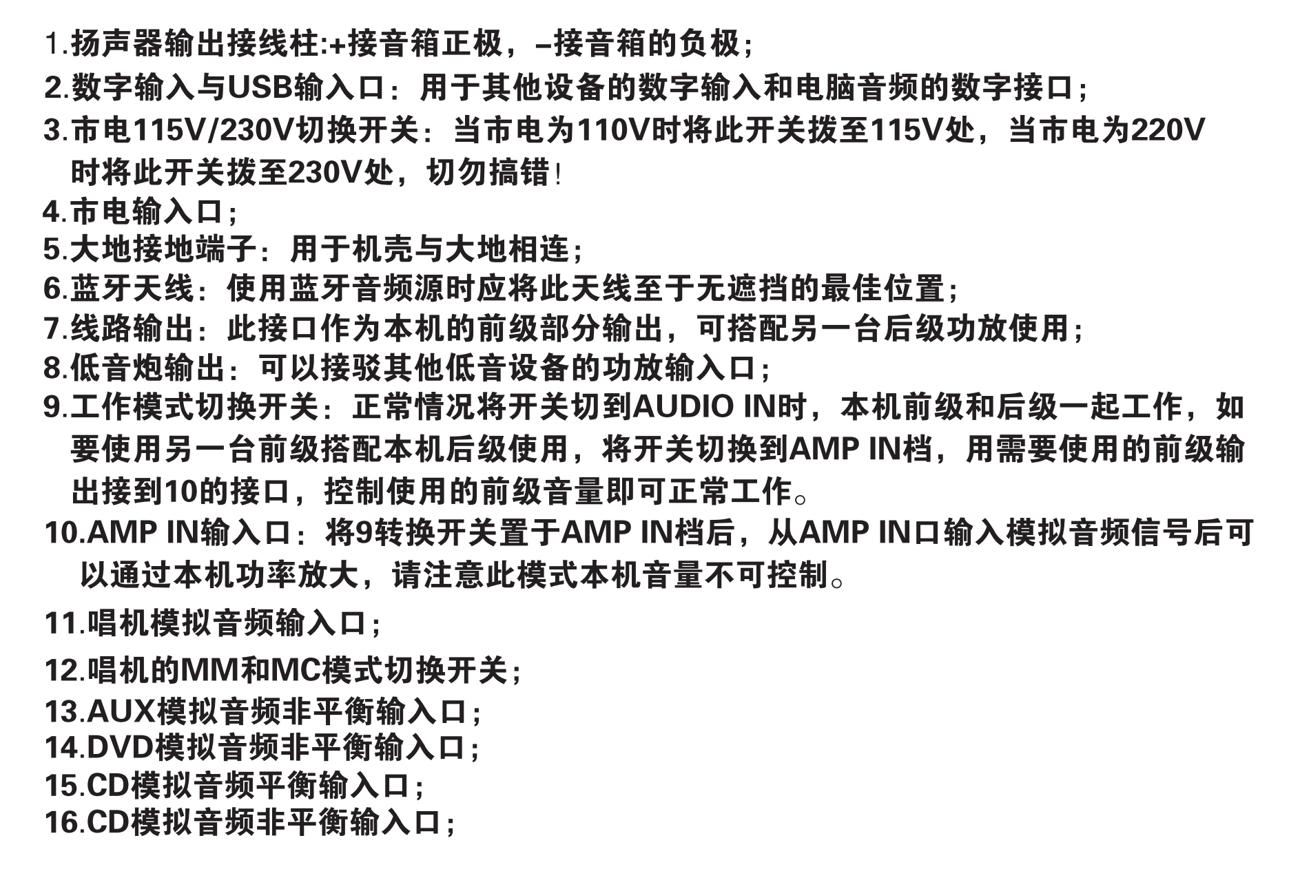 支持三路同轴一路光纤数字输入(最高采样率24bti/192KHz)、支持三路非平衡和一路全平衡模拟输入、一路唱机输入(唱机支持MM/MC选择)