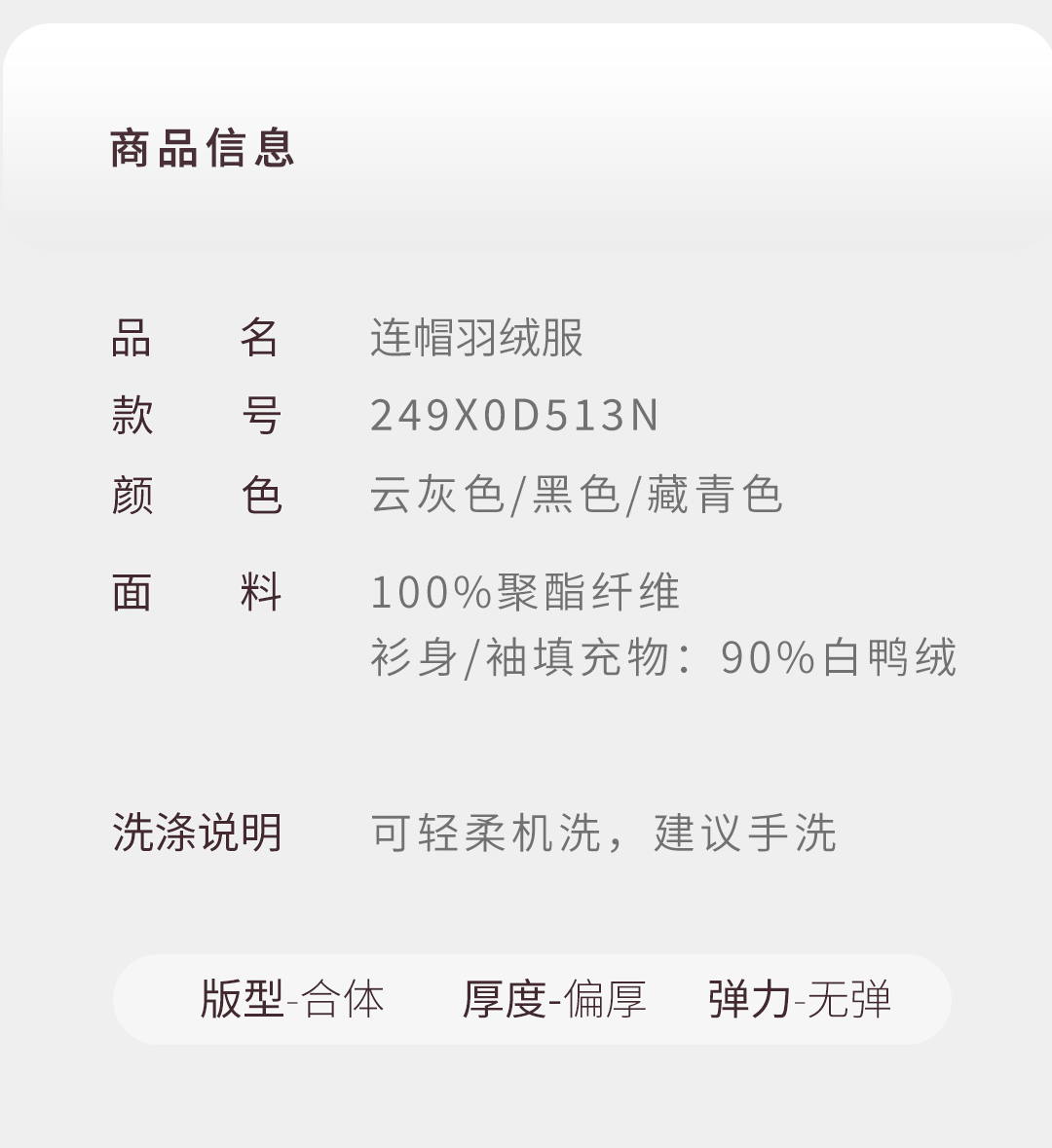 【北极三号】90羽绒户外三防高充绒量连帽羽绒服249X0D513N