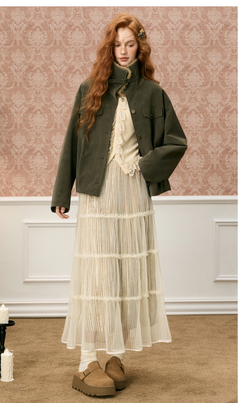 三彩独醒2025冬季新款网纱半身裙松紧腰A字裙长裙氛围感F